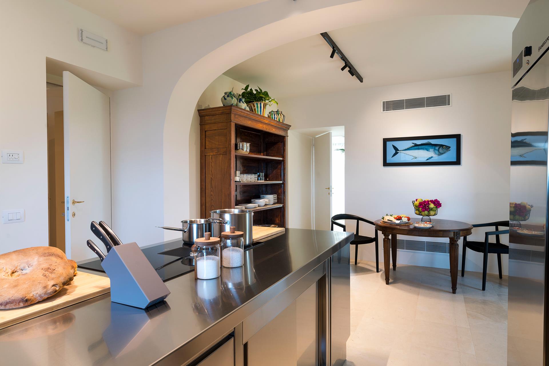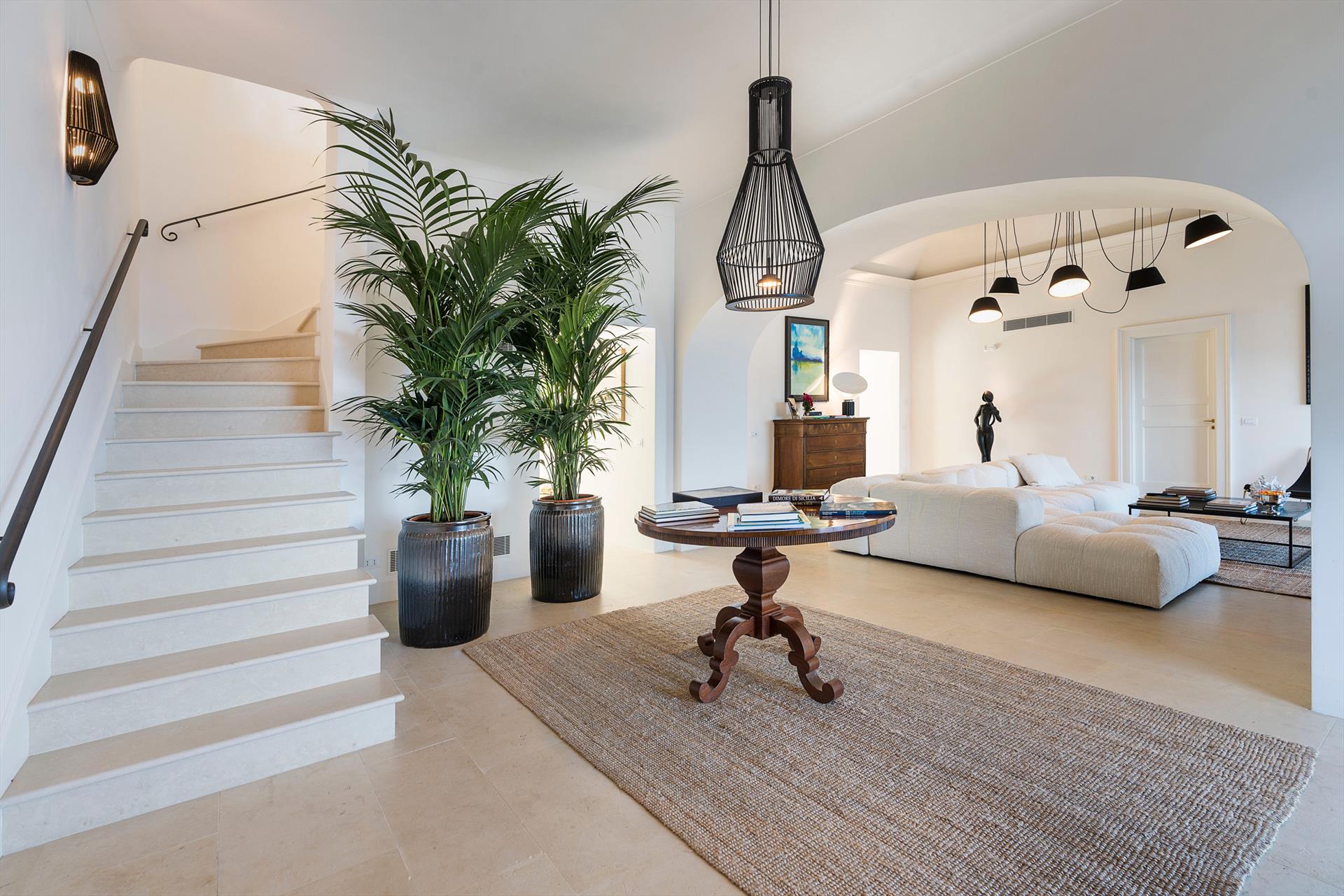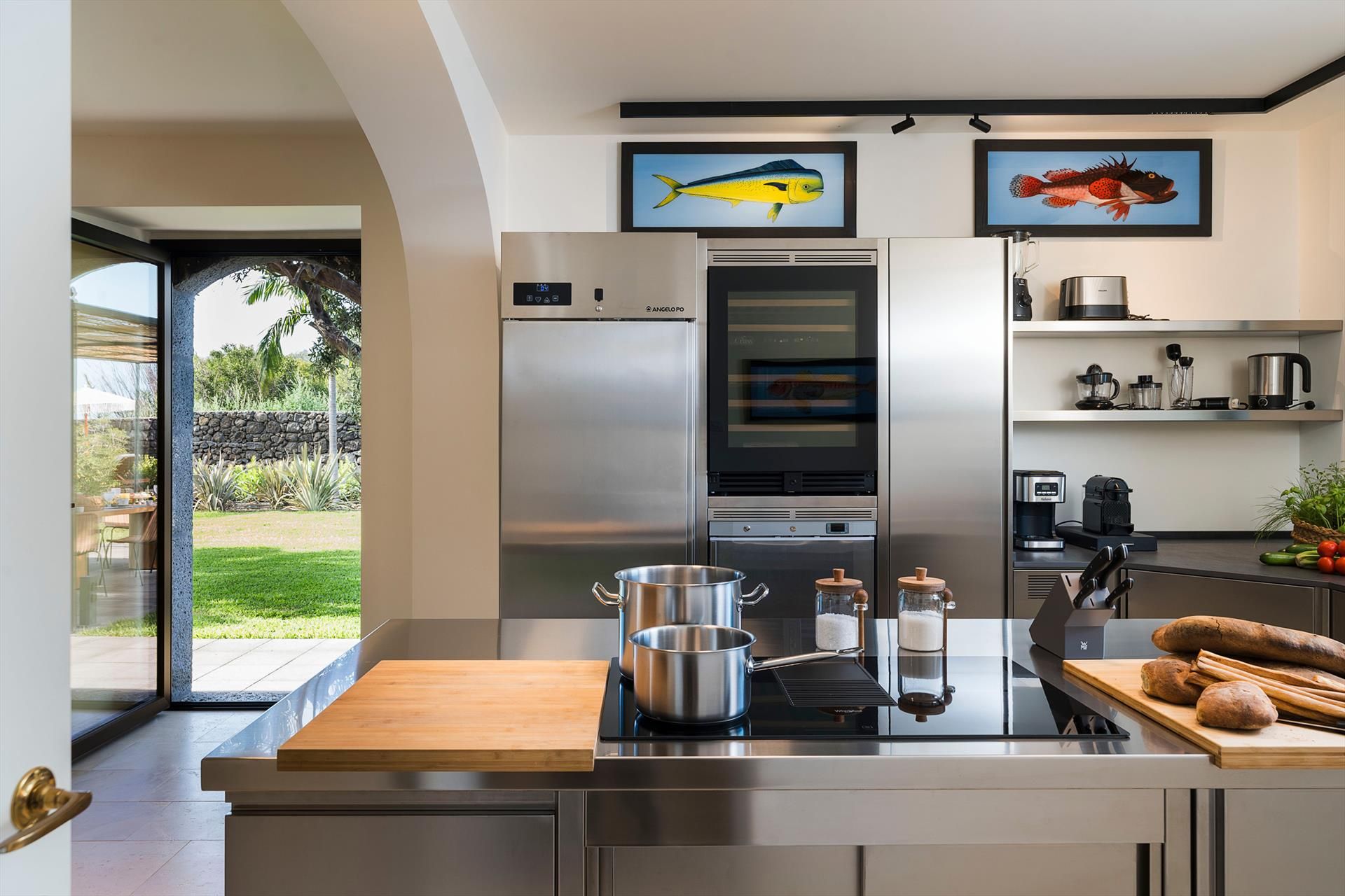 Située sur un splendide front de mer, Rosa Nero est une élégante et confortable villa avec piscine à Pozzillo, près d'Acireale. La villa, qui dispose d'une belle piscine avec solarium, est entourée d'un jardin méditerranéen bien entretenu et de grandes terrasses meublées bordant la mer. Ses intérieurs exclusifs et accueillants sont répartis sur deux niveaux et comprennent : au rez-de-chaussée un grand salon (TV), une cuisine moderne et bien équipée, une salle à manger, une salle de bains, une buanderie et une chambre double avec salle de bains-douche ; au premier étage, trois autres chambres doubles, toutes avec salle de bains-douche, complètent la zone de couchage. La résidence est également équipée des meilleurs conforts, tels que l'air conditionné (dans toutes les pièces), le Wi-Fi, 2 télévisions intelligentes, un lave-linge, un sèche-linge, un lave-vaisselle, des fours électriques et à micro-ondes, des machines à café expresso et américain, une cave à vin, une machine à glaçons et un parking privé. Parfaite pour les familles et les groupes d'amis, la Villa Rosa Nero constitue également un point de départ idéal pour explorer les merveilles de la Sicile orientale, notamment Taormine, le parc de l'Etna, Acireale, Aci Trezza, Aci Castello et Catane.