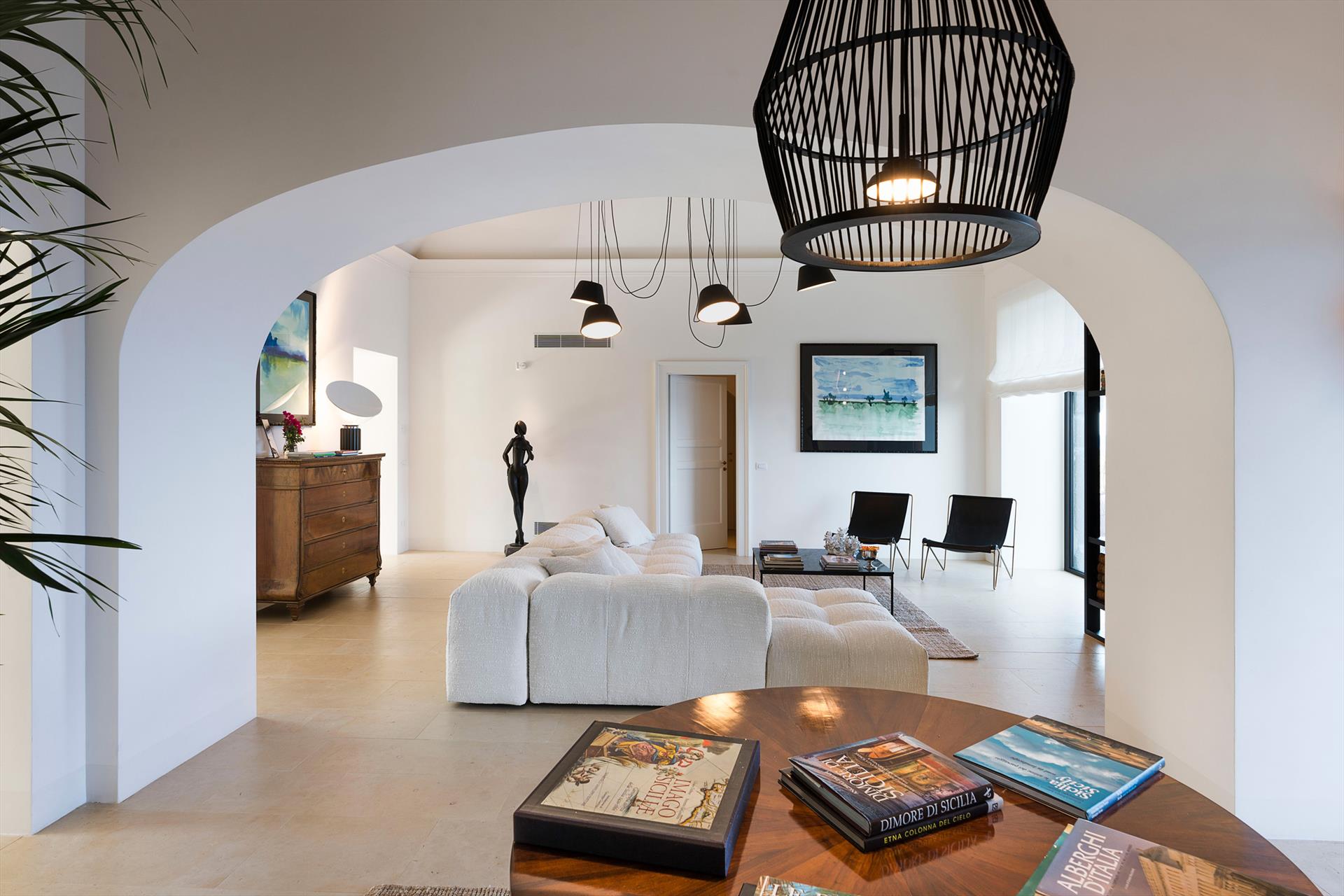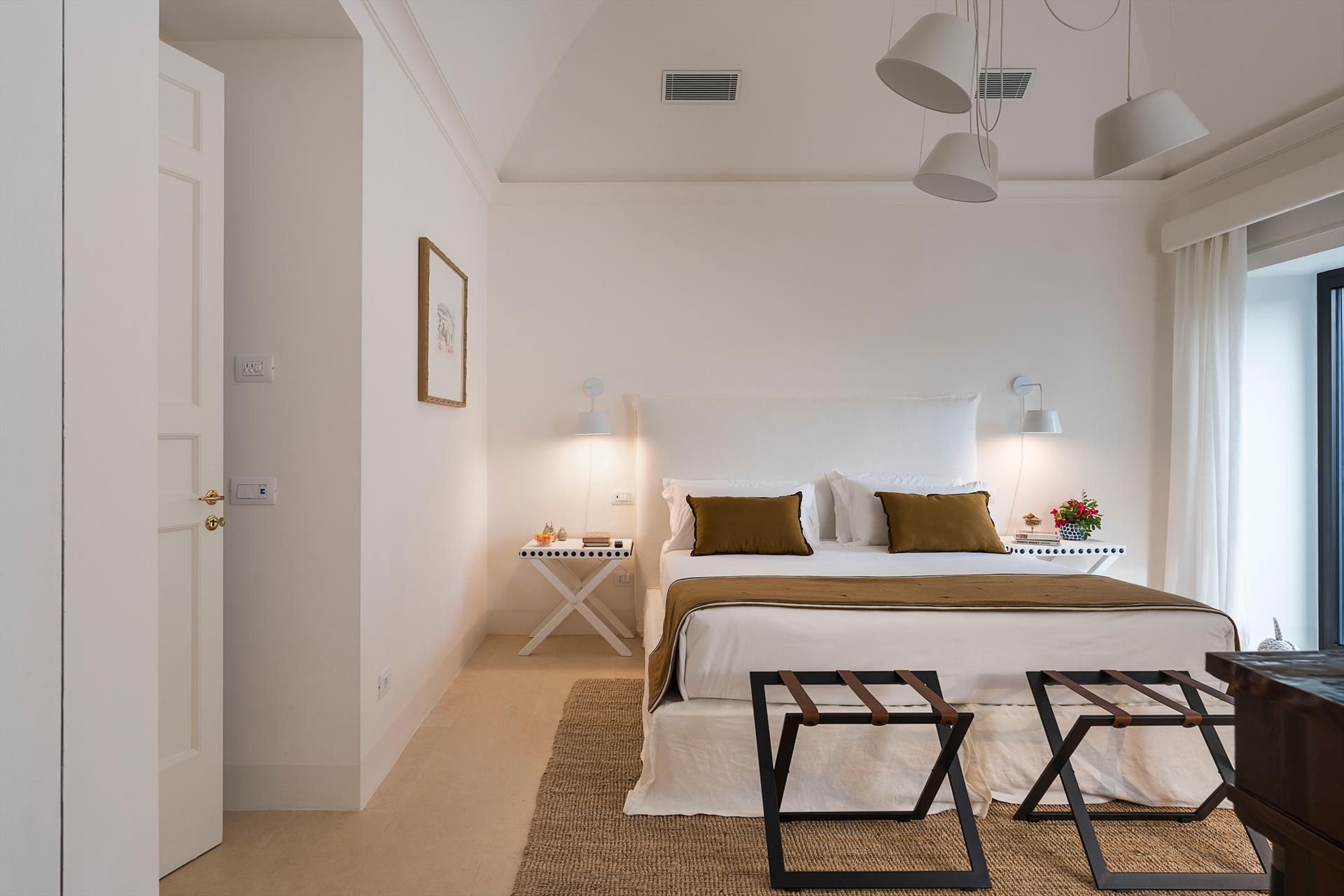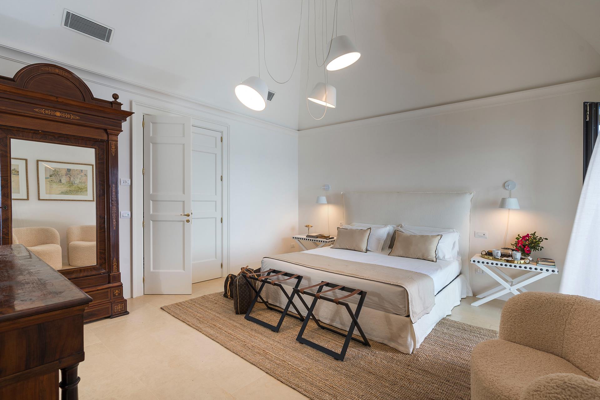 Située sur un splendide front de mer, Rosa Nero est une élégante et confortable villa avec piscine à Pozzillo, près d'Acireale. La villa, qui dispose d'une belle piscine avec solarium, est entourée d'un jardin méditerranéen bien entretenu et de grandes terrasses meublées bordant la mer. Ses intérieurs exclusifs et accueillants sont répartis sur deux niveaux et comprennent : au rez-de-chaussée un grand salon (TV), une cuisine moderne et bien équipée, une salle à manger, une salle de bains, une buanderie et une chambre double avec salle de bains-douche ; au premier étage, trois autres chambres doubles, toutes avec salle de bains-douche, complètent la zone de couchage. La résidence est également équipée des meilleurs conforts, tels que l'air conditionné (dans toutes les pièces), le Wi-Fi, 2 télévisions intelligentes, un lave-linge, un sèche-linge, un lave-vaisselle, des fours électriques et à micro-ondes, des machines à café expresso et américain, une cave à vin, une machine à glaçons et un parking privé. Parfaite pour les familles et les groupes d'amis, la Villa Rosa Nero constitue également un point de départ idéal pour explorer les merveilles de la Sicile orientale, notamment Taormine, le parc de l'Etna, Acireale, Aci Trezza, Aci Castello et Catane.