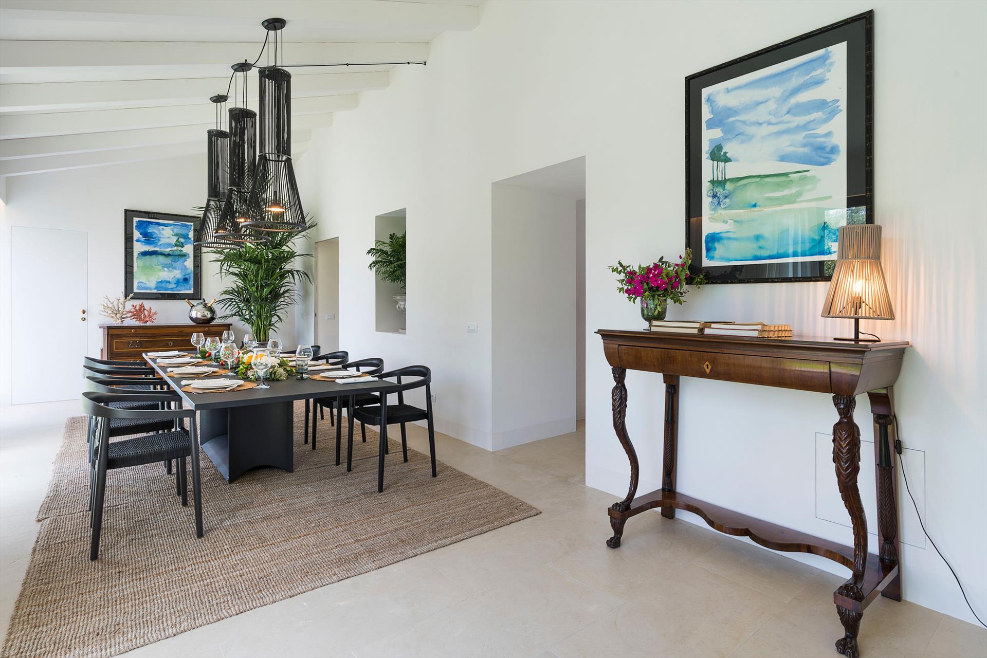 - Equipement intérieur : Percolateur à café noir, Lave-vaisselle, 4 Anti-moustiques électriques, Four électrique, Congélateur, Réfrigérateur, 4 Sèche-cheveux, Chaise haute, 4 Plaques de cuisson : brûleurs à induction, Machine à glaçons, Fer à repasser, Bouilloire, Micro-ondes, Mixeur, Machine Nespresso, Coffre-fort, Grille-pain, Sèche-linge, 2 TV, Lave-linge.