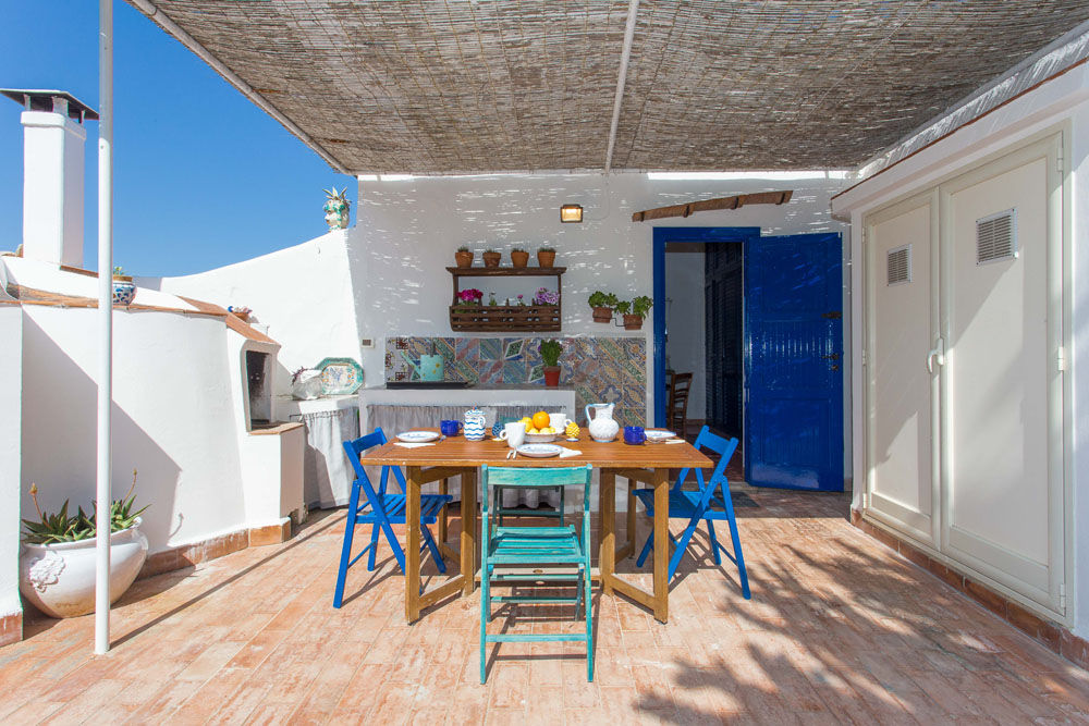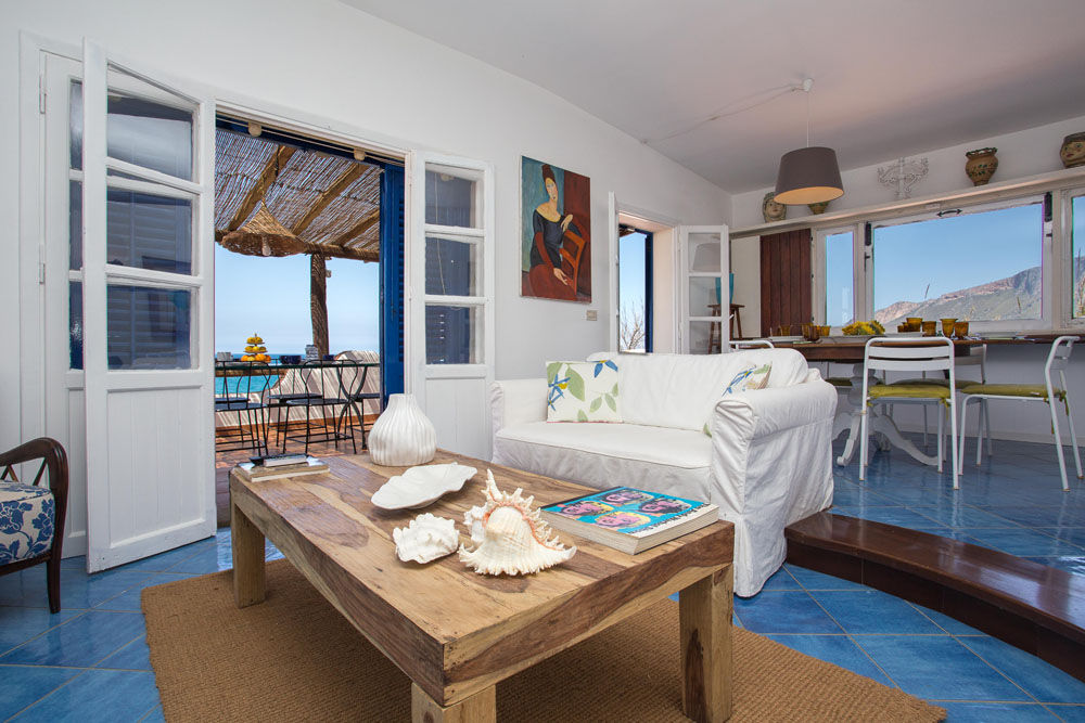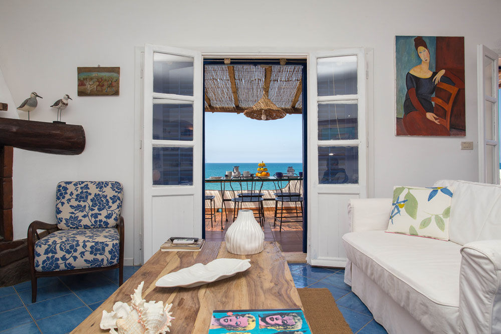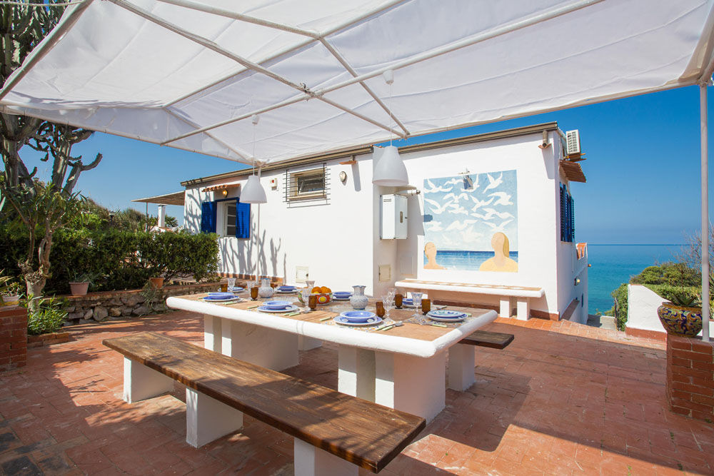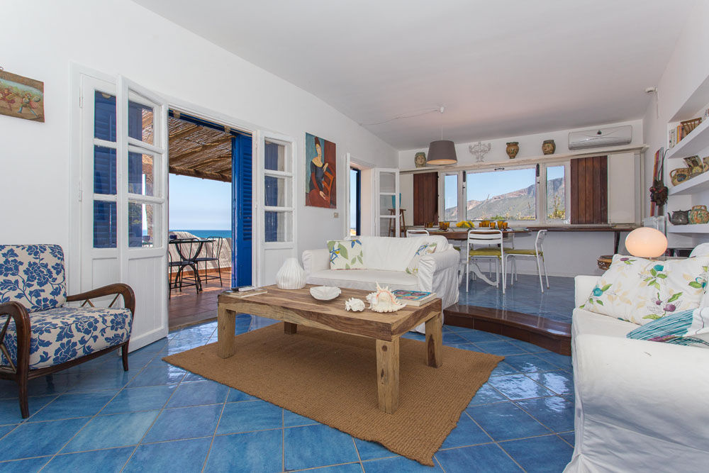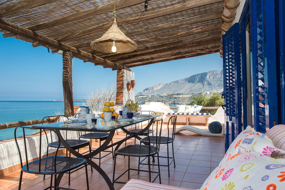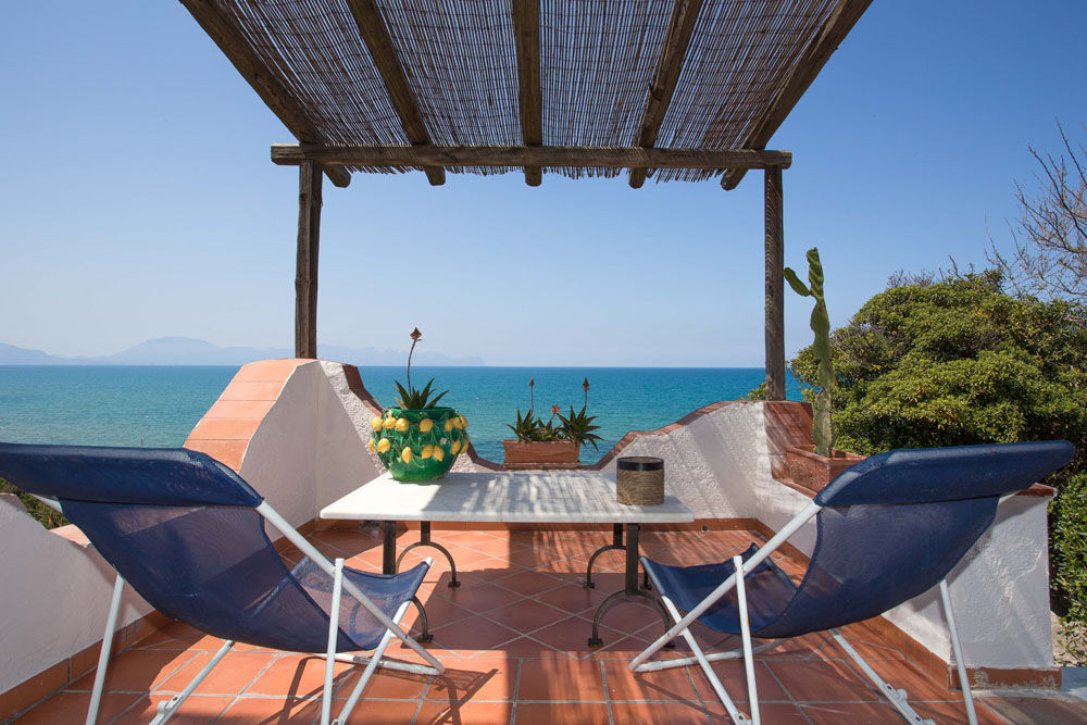 La Villa Sea Breeze est une villa de vacances sicilienne particulièrement charmante, construite directement en bord de mer, avec un magnifique jardin et de fantastiques terrasses avec vue sur la mer, sur la portion de côte située juste entre les villes de Balestrate et Terrasini, près du village de Trappeto. La villa indépendante a été construite dans le paysage environnant, en suivant ses contours, et est divisée en trois niveaux indépendants dont l'un est situé à un point plus élevé que les autres, à une courte distance des autres. Les terrasses offrent une vue imprenable sur la mer et la Sicile occidentale et un grand espace extérieur pour toutes sortes d'activités, avec la terrasse ensoleillée ou la terrasse couverte offrant de l'ombre et la cuisine extérieure avec une grande table pour les repas "Al Fresco". En suivant la grande zone pavée en pierre jusqu'à l'entrée, vous vous rendez compte des grands contrastes entre la végétation verte, les fleurs et le bleu intense de la mer.