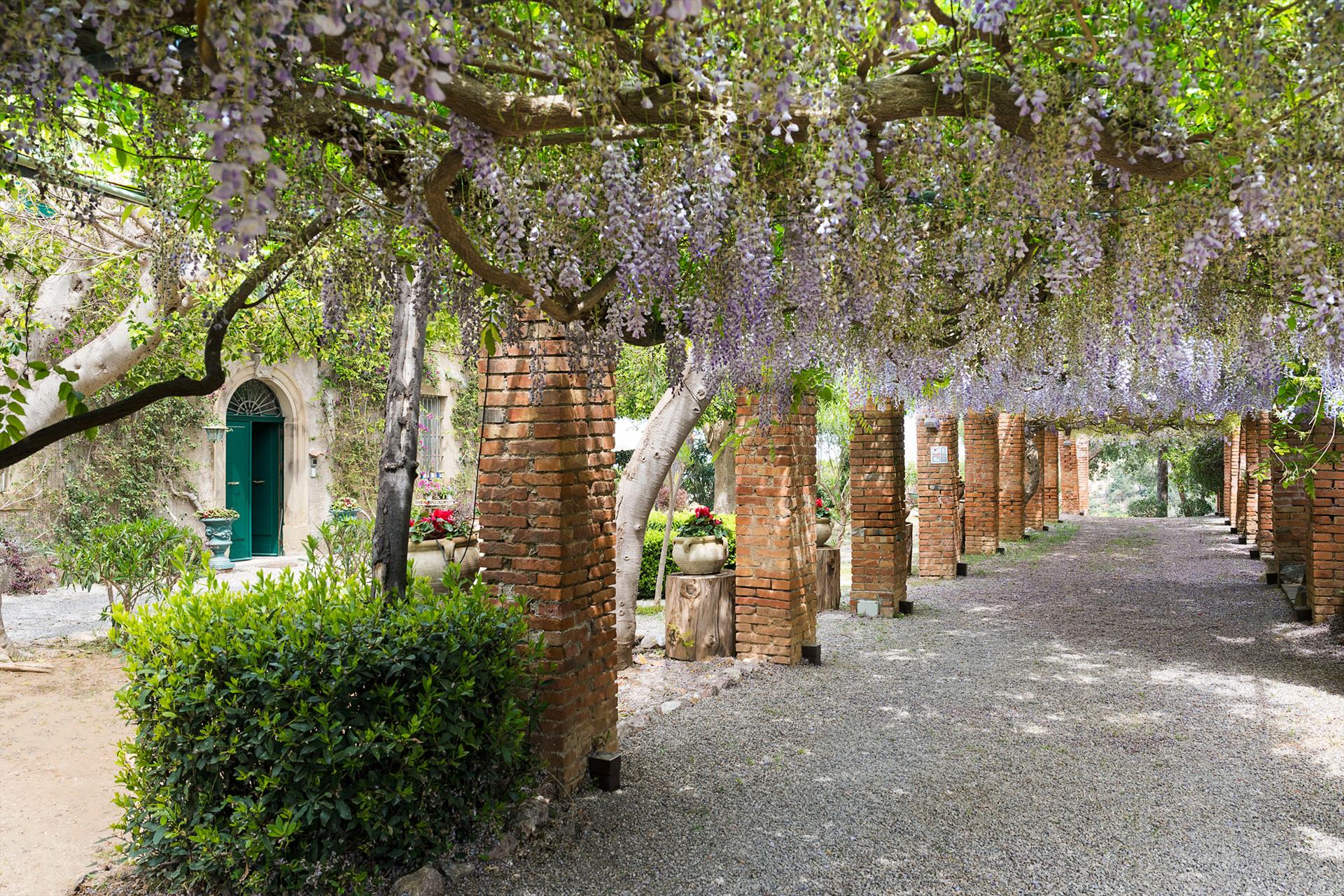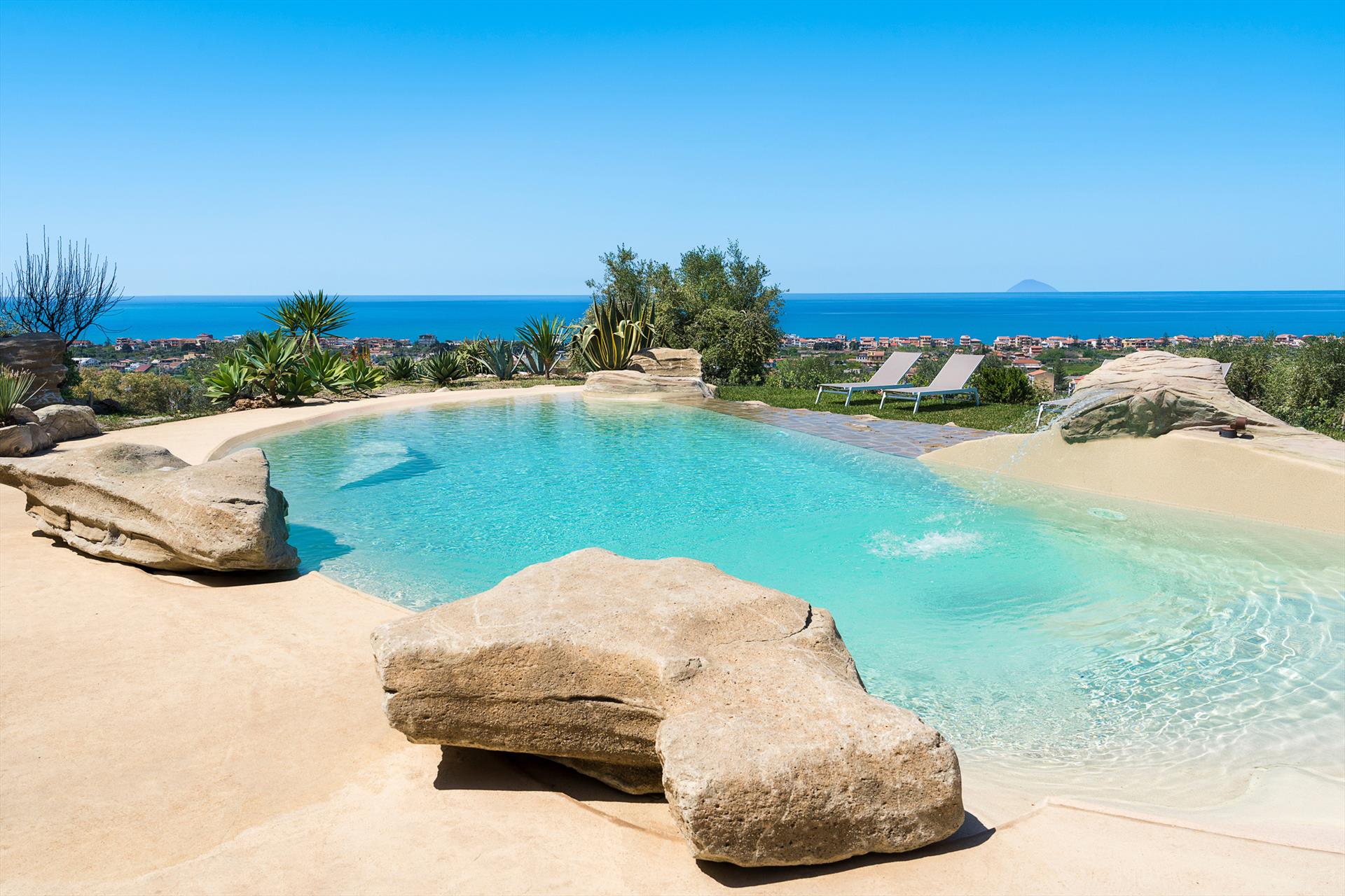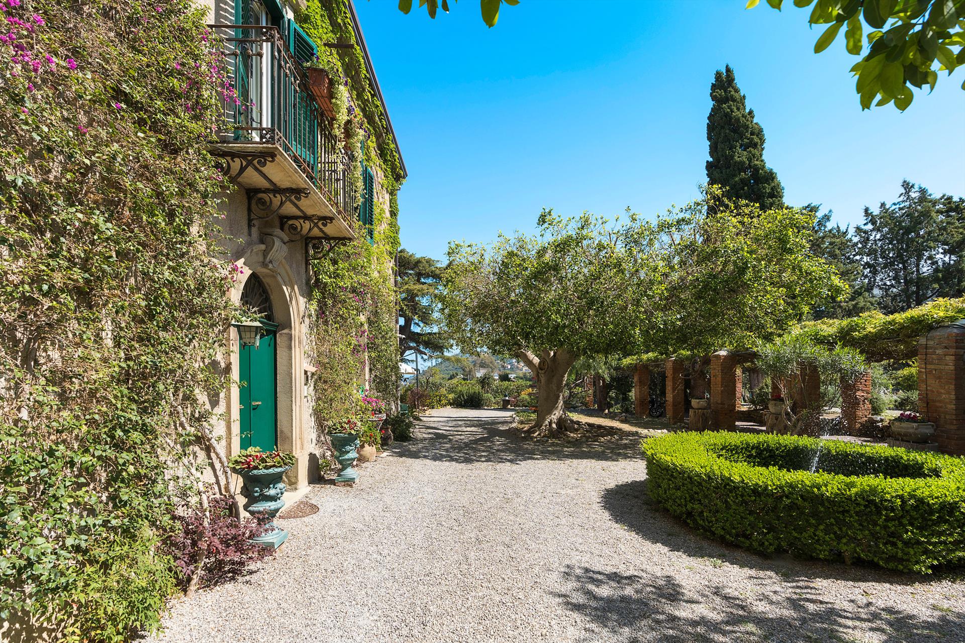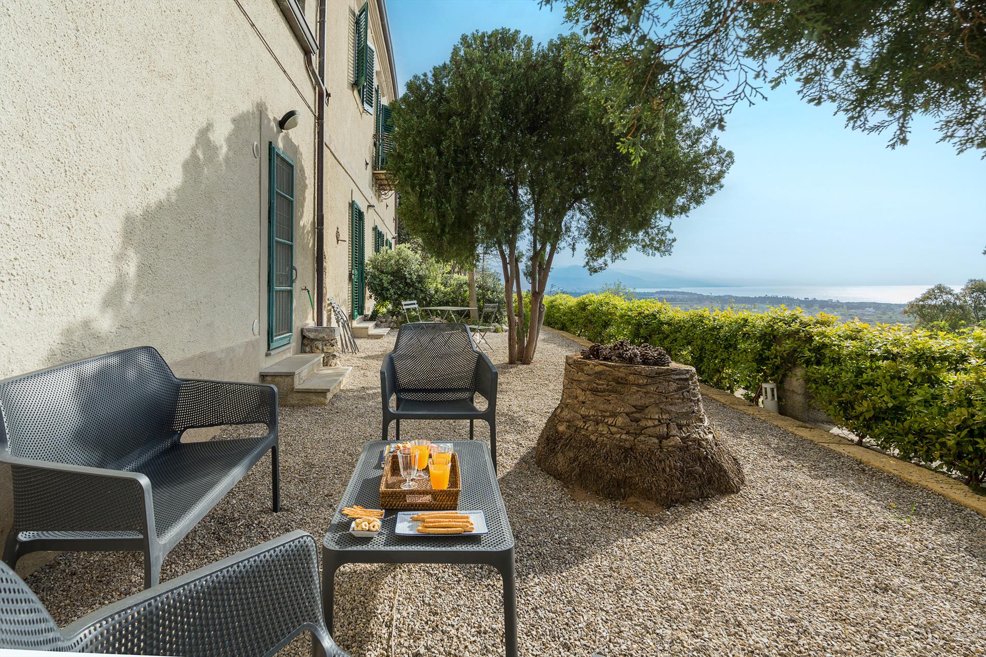 La propriété s'étend sur un vaste domaine, incluant un magnifique parc arboré de spécimens centenaires. La villa est agrémentée d'une superbe piscine avec solarium, d'un bain à remous et de vastes terrasses offrant une vue imprenable sur la campagne. De là, le regard s'étend sur toute la côte tyrrhénienne jusqu'à la mer et les îles Éoliennes.