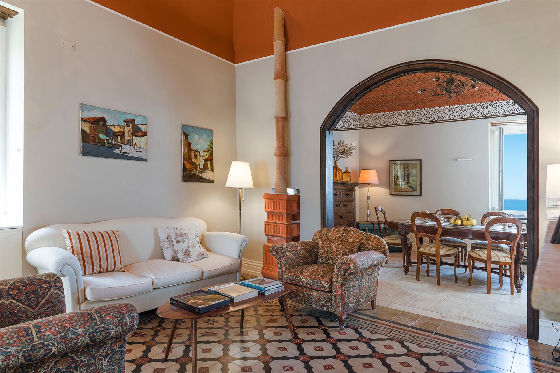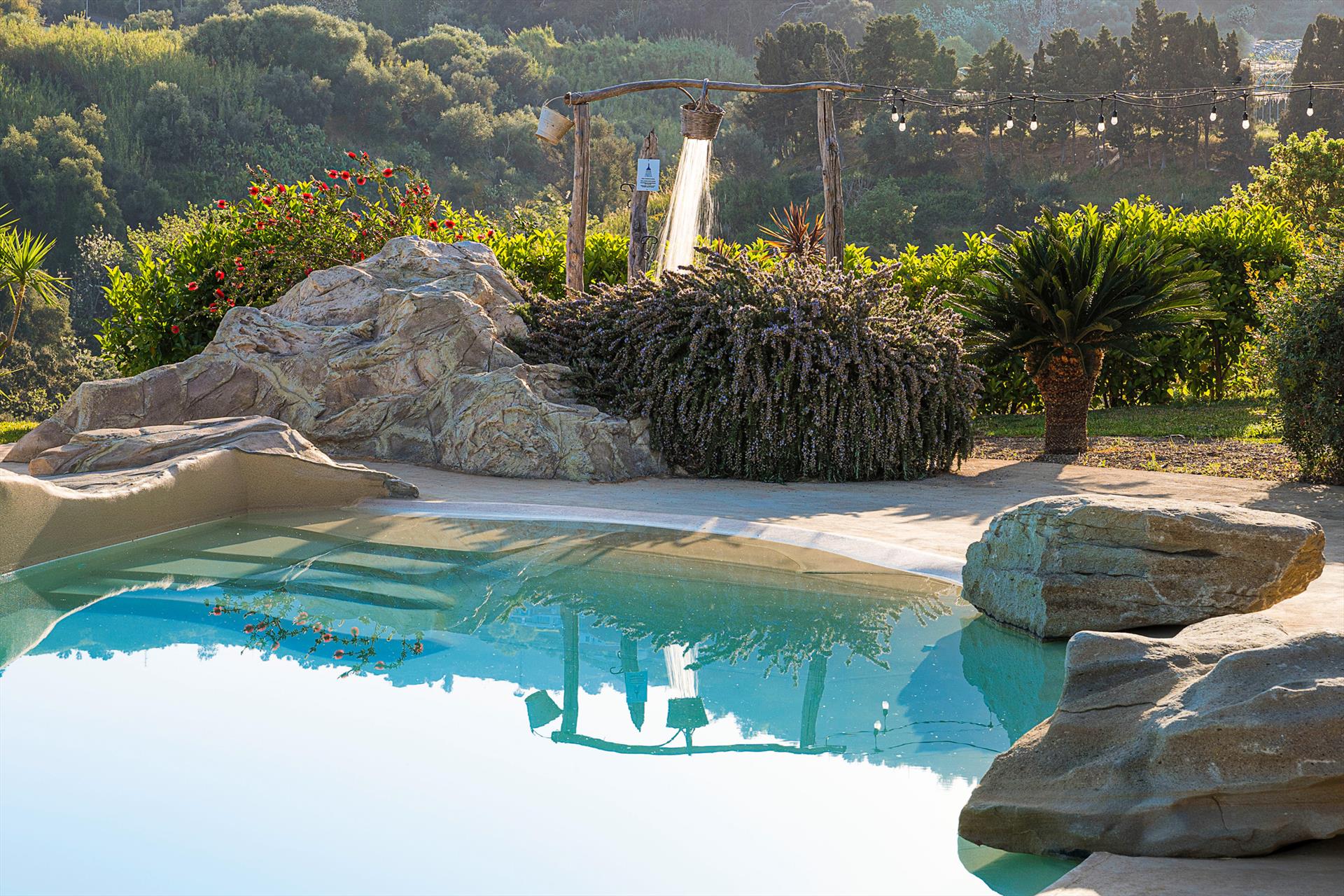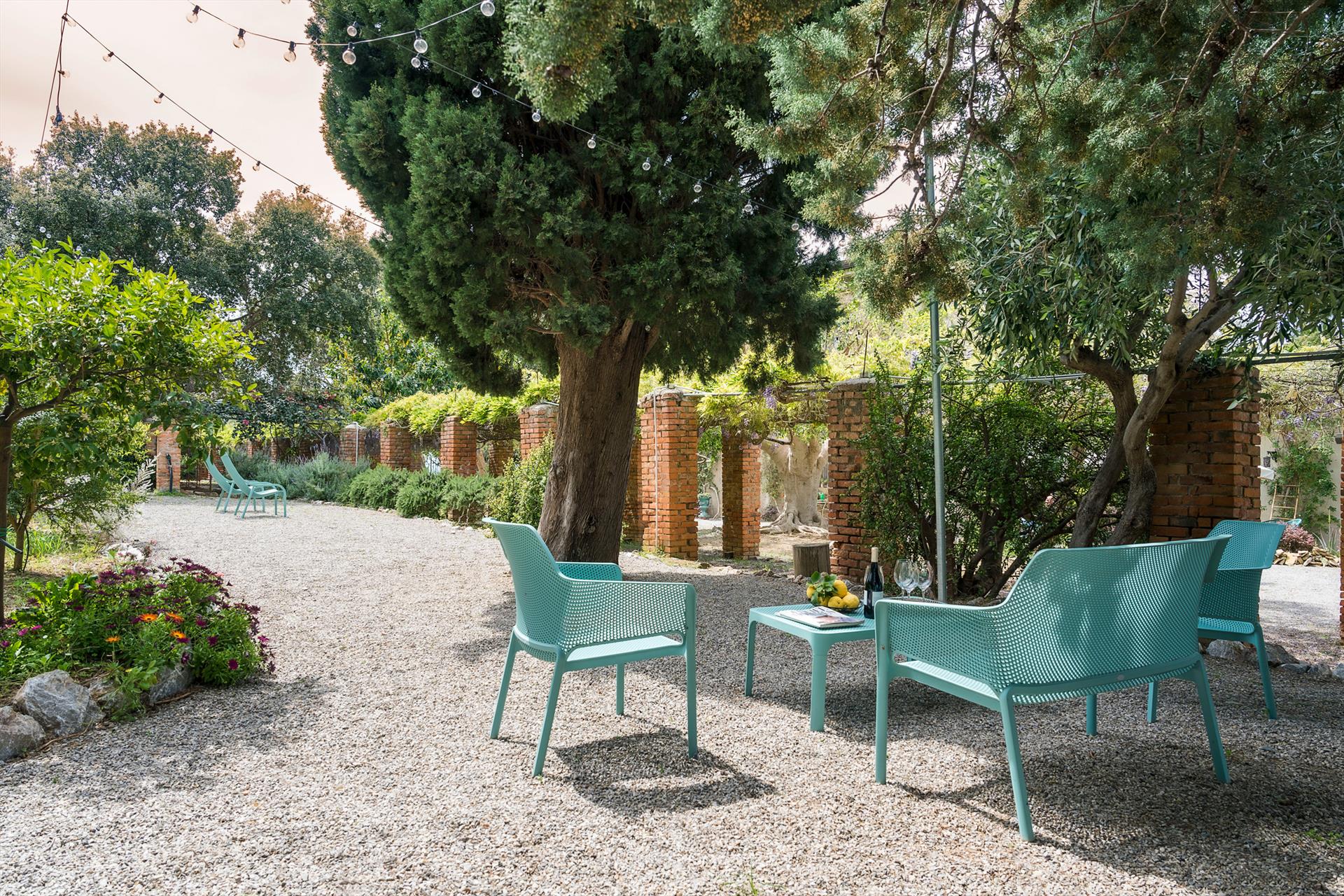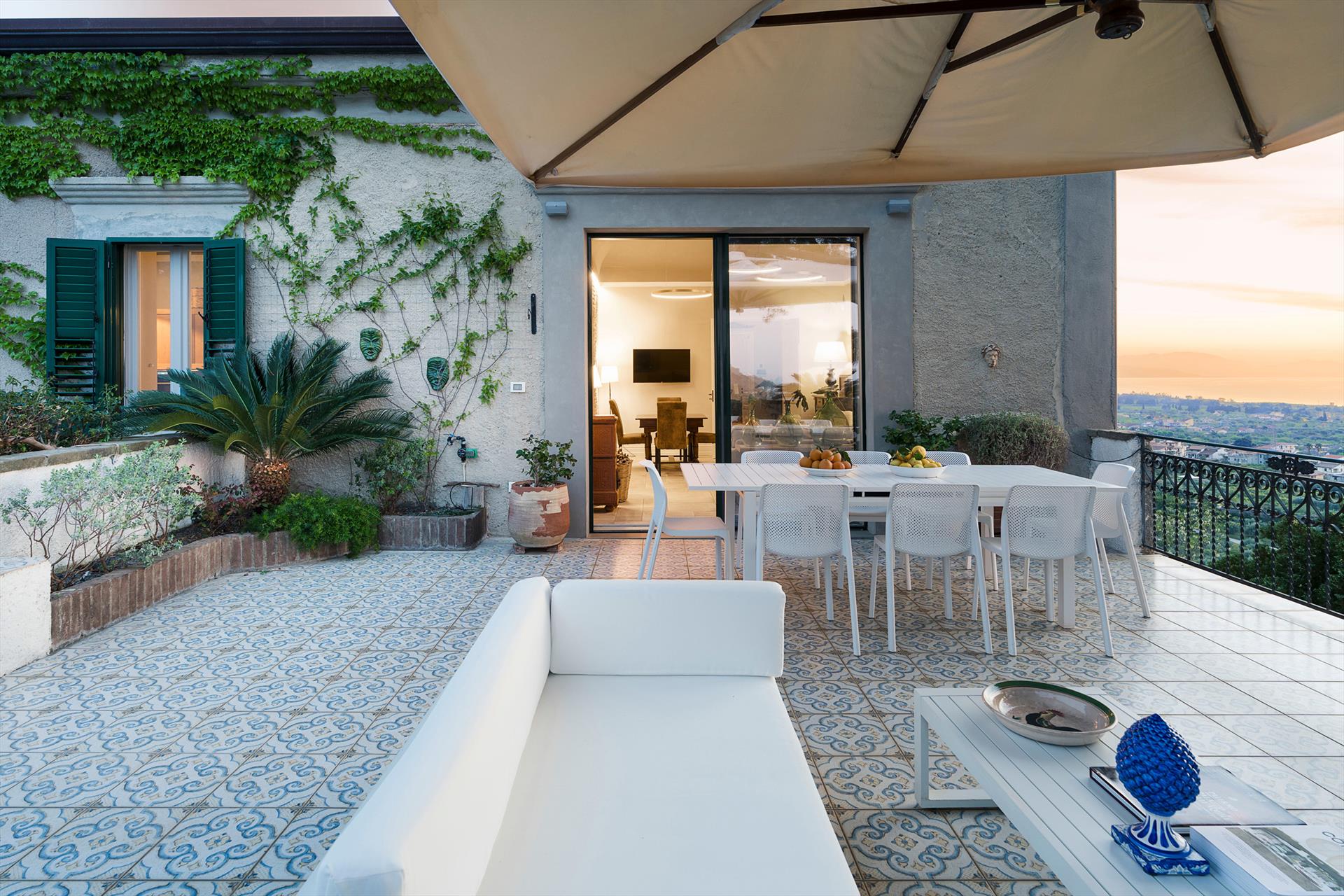 La propriété s'étend sur un vaste domaine, incluant un magnifique parc arboré de spécimens centenaires. La villa est agrémentée d'une superbe piscine avec solarium, d'un bain à remous et de vastes terrasses offrant une vue imprenable sur la campagne. De là, le regard s'étend sur toute la côte tyrrhénienne jusqu'à la mer et les îles Éoliennes.