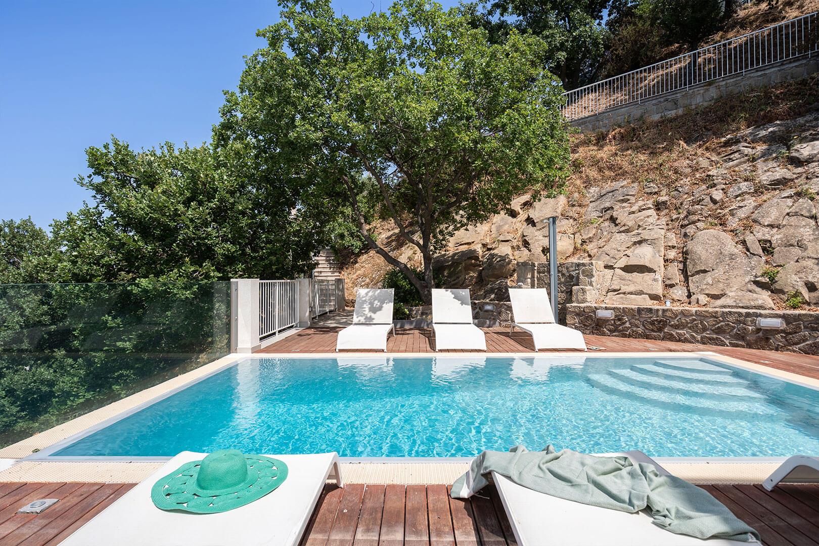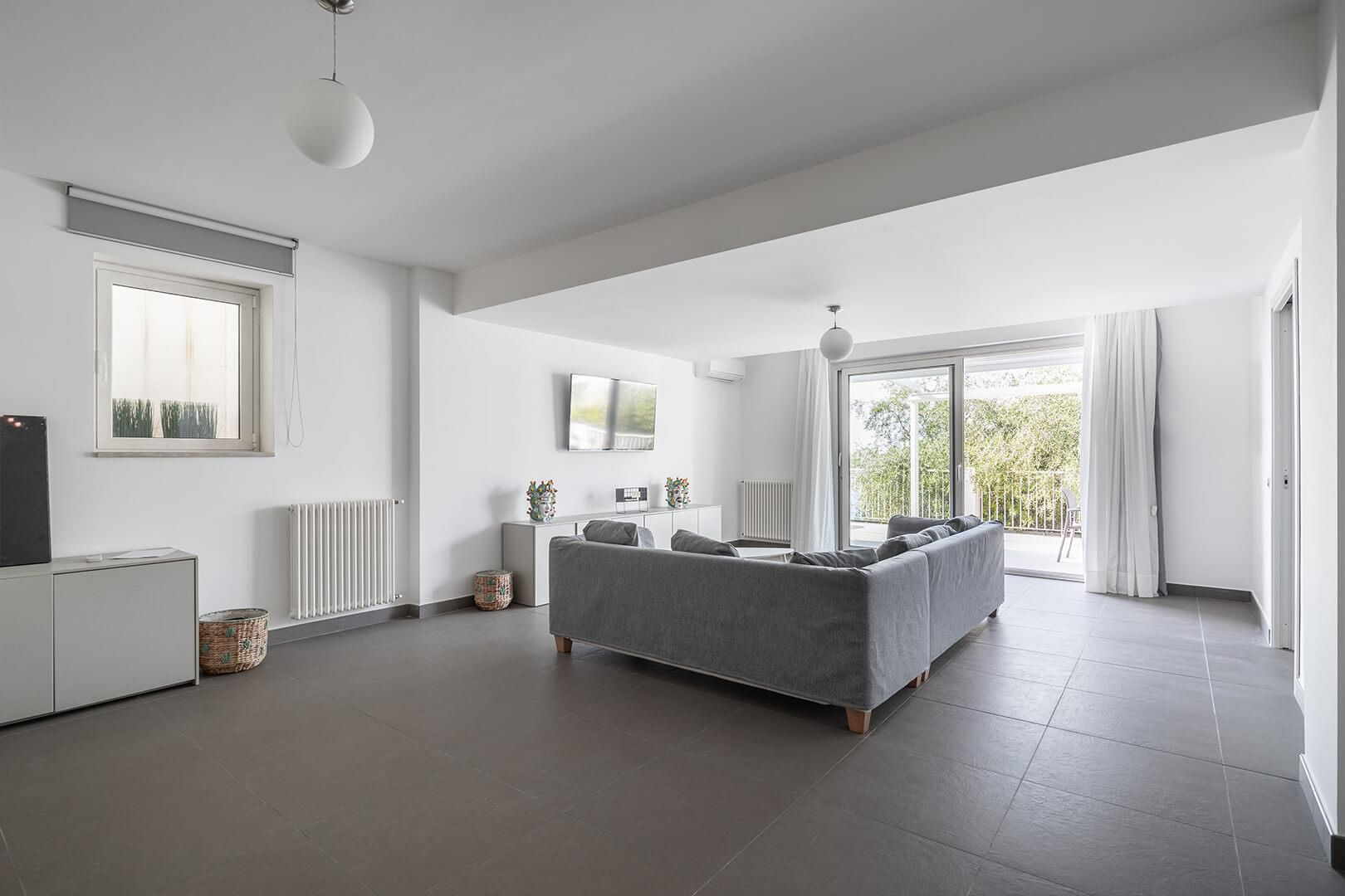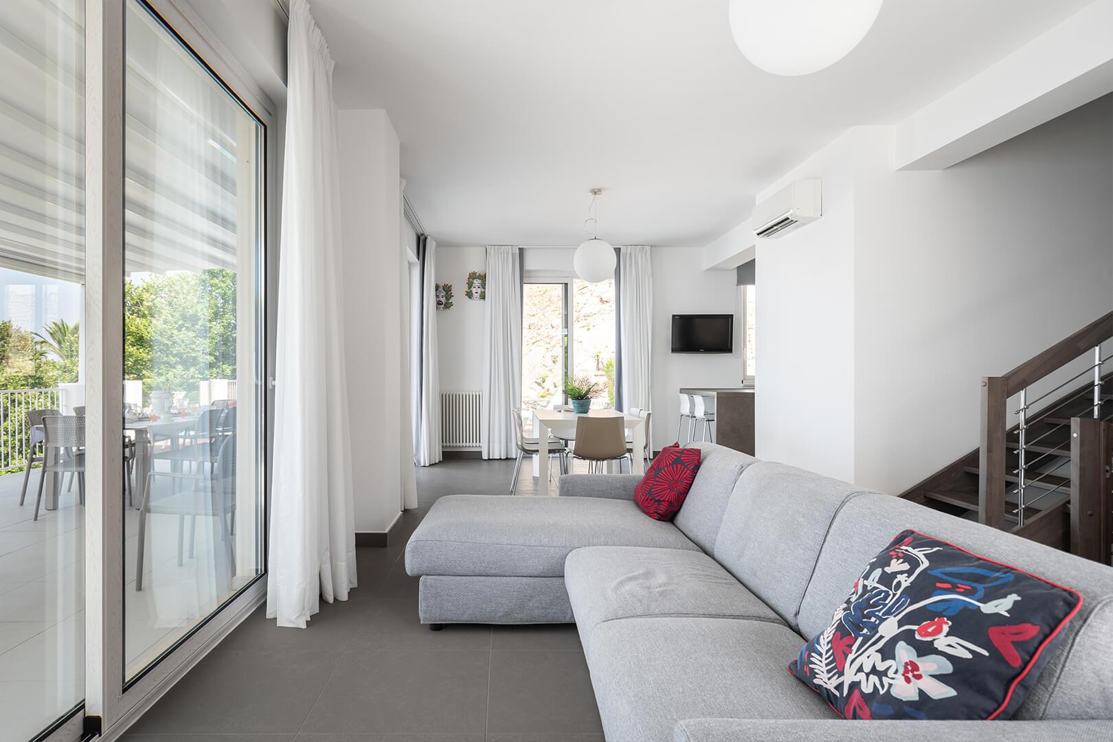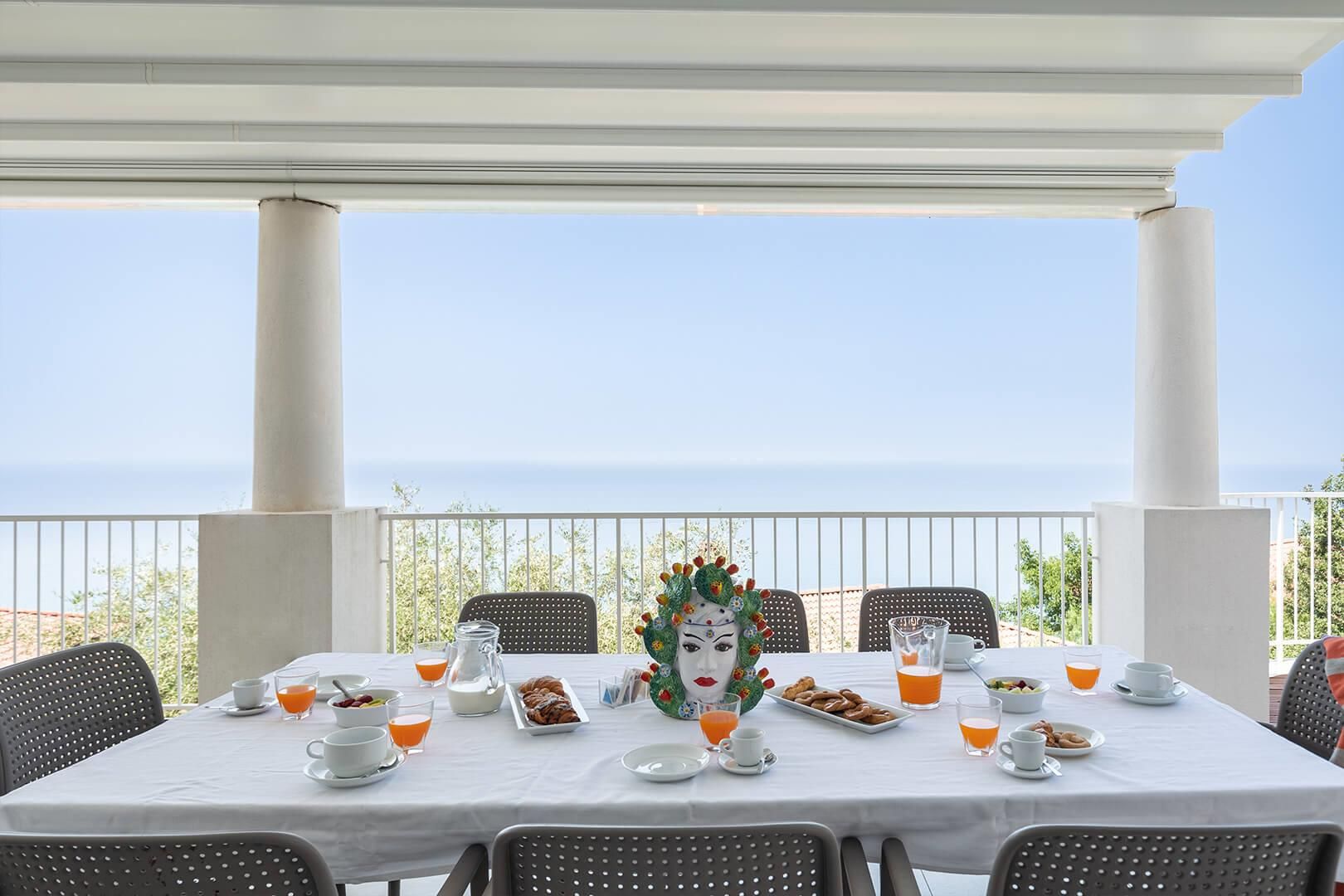 Les intérieurs sont élégants et contemporains, agrémentés d’un mobilier raffiné et sobre. L’espace extérieur comprend une vaste terrasse privée ainsi qu’une petite piscine à débordement, adossée à une suggestive paroi rocheuse, offrant une vue spectaculaire sur la mer Tyrrhénienne et les îles Éoliennes.