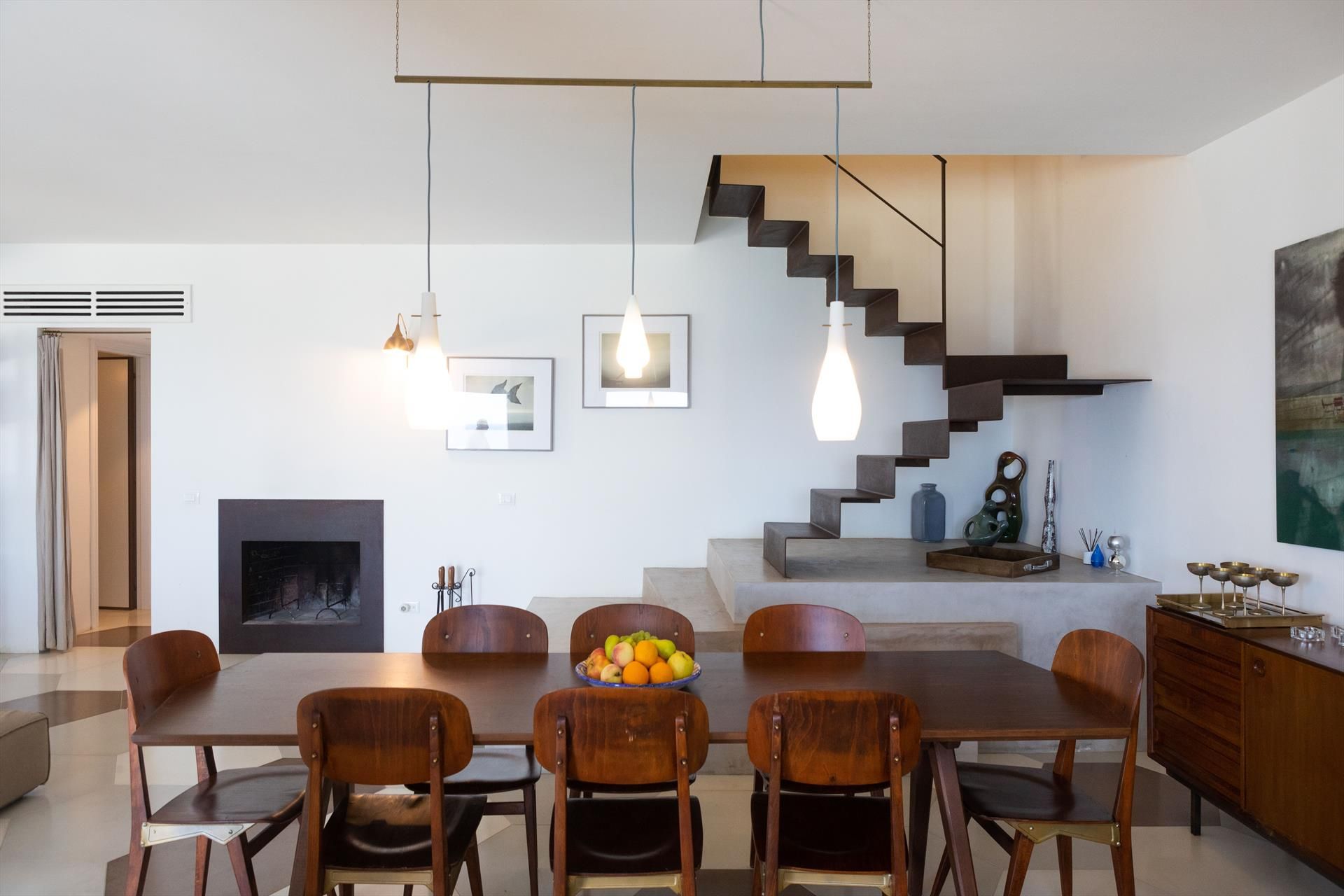 La maison principale (200 m²) s'étend sur deux étages. Les intérieurs sont spacieux, contemporains, fonctionnels et élégants. Depuis le salon, on a une vue sur la terrasse de 60 m², qui est le cœur de la villa.
