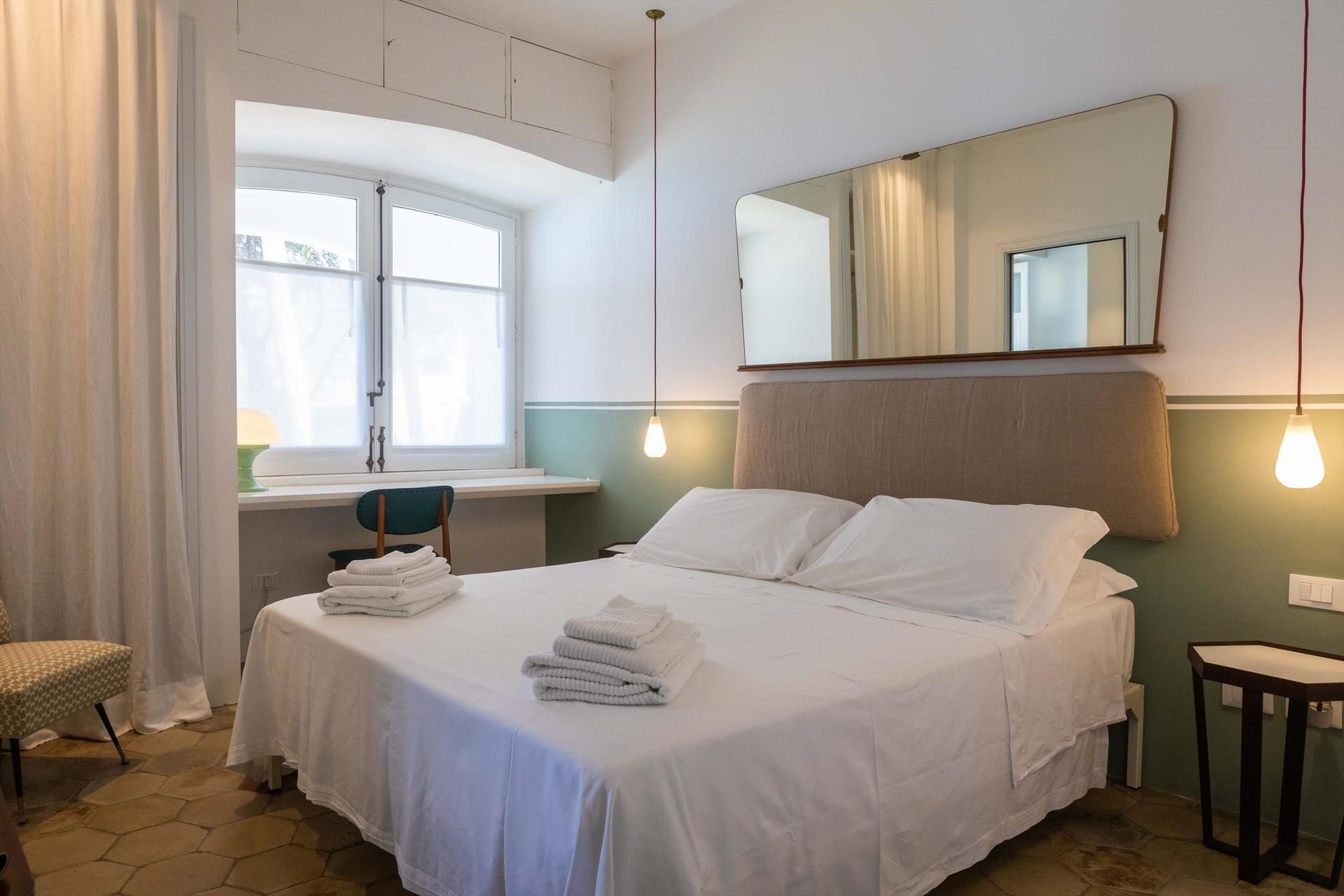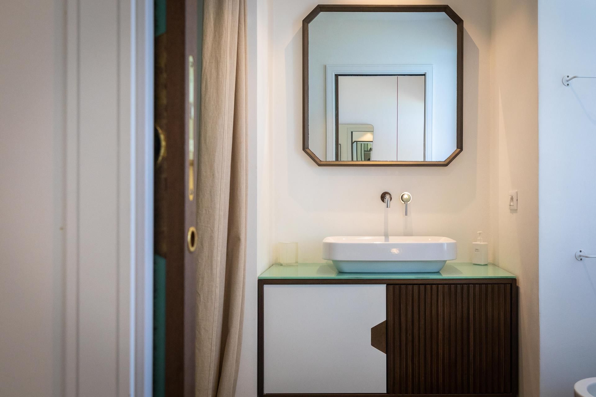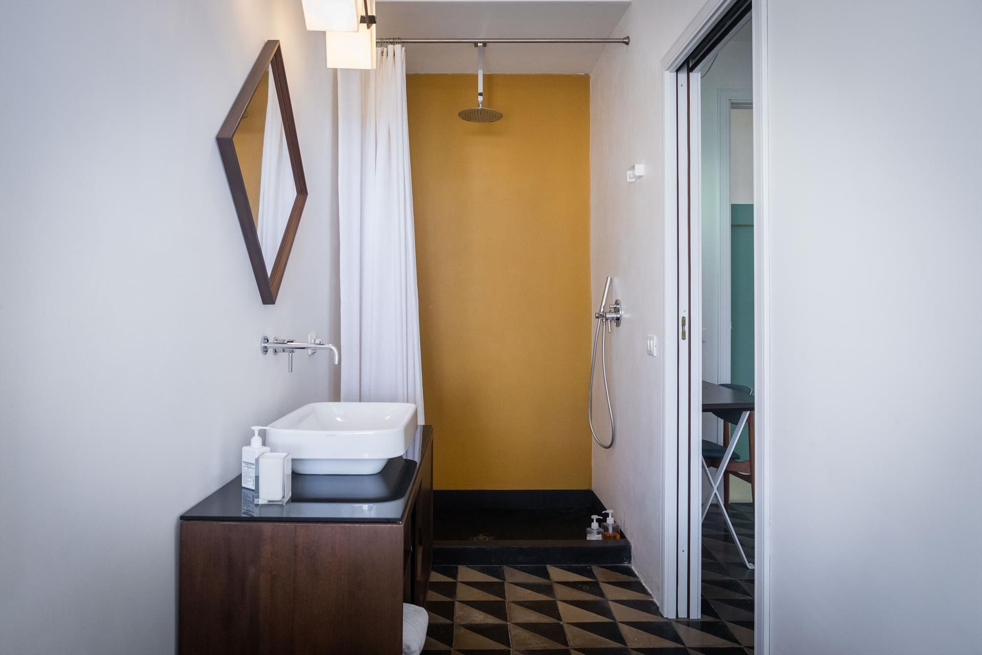 Étage supérieur: 4 chambres doubles, chacune avec sa propre salle de bain avec douche, l'une d'entre elles ayant également une baignoire originale. Deux des quatre chambres ont un accès direct à un espace extérieur couvert qui offre la possibilité de se détendre.