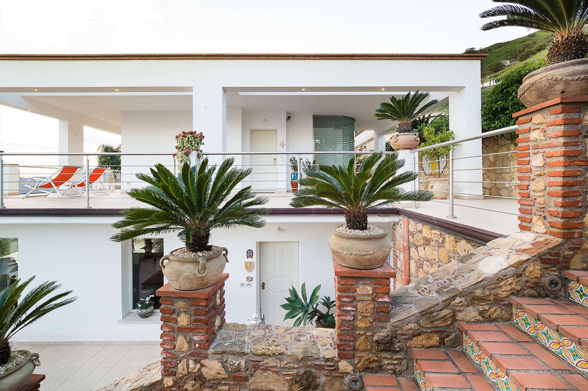La Villa Kira est une splendide villa avec piscine située en bordure de Letojanni, une station balnéaire réputée à quelques kilomètres de Taormine. Entourée d'un jardin méditerranéen luxuriant et bien entretenu, cette villa exclusive jouit d'une position panoramique avec des vues à couper le souffle sur la mer et la baie de Taormine, que l'on peut admirer en toute détente depuis la piscine et ses spacieuses terrasses. Raffinée et élégante, la Villa Kira est répartie sur deux niveaux et présente des intérieurs accueillants conçus pour répondre aux besoins d'une vie contemporaine. Au rez-de-chaussée, on trouve un spacieux salon-salle à manger avec cuisine, ouvert sur la véranda par de grandes portes-fenêtres, trois chambres et deux salle de bains avec douche. À l'étage supérieur, auquel on accède par un escalier en colimaçon moderne et pratique ou par un escalier extérieur, se trouve la chambre principale, dotée d'une terrasse panoramique et d'une luxueuse salle de bains avec baignoire et douche. La villa dispose également de l'air conditionné (5 splits), du Wi-Fi, de la télévision par satellite, de la chaîne hi-fi, d'un coffre-fort, d'un lave-vaisselle, d'un lave-linge et d'un sèche-linge. Depuis la villa, vous pourrez rejoindre les plages voisines de Letojanni, Mazzarò et Isola Bella en quelques minutes en voiture. Vous pourrez également visiter Catane et Syracuse, les villages de l'Etna, les gorges de l'Alcantara et les villages de bord de mer de la Riviera dei Ciclopi.