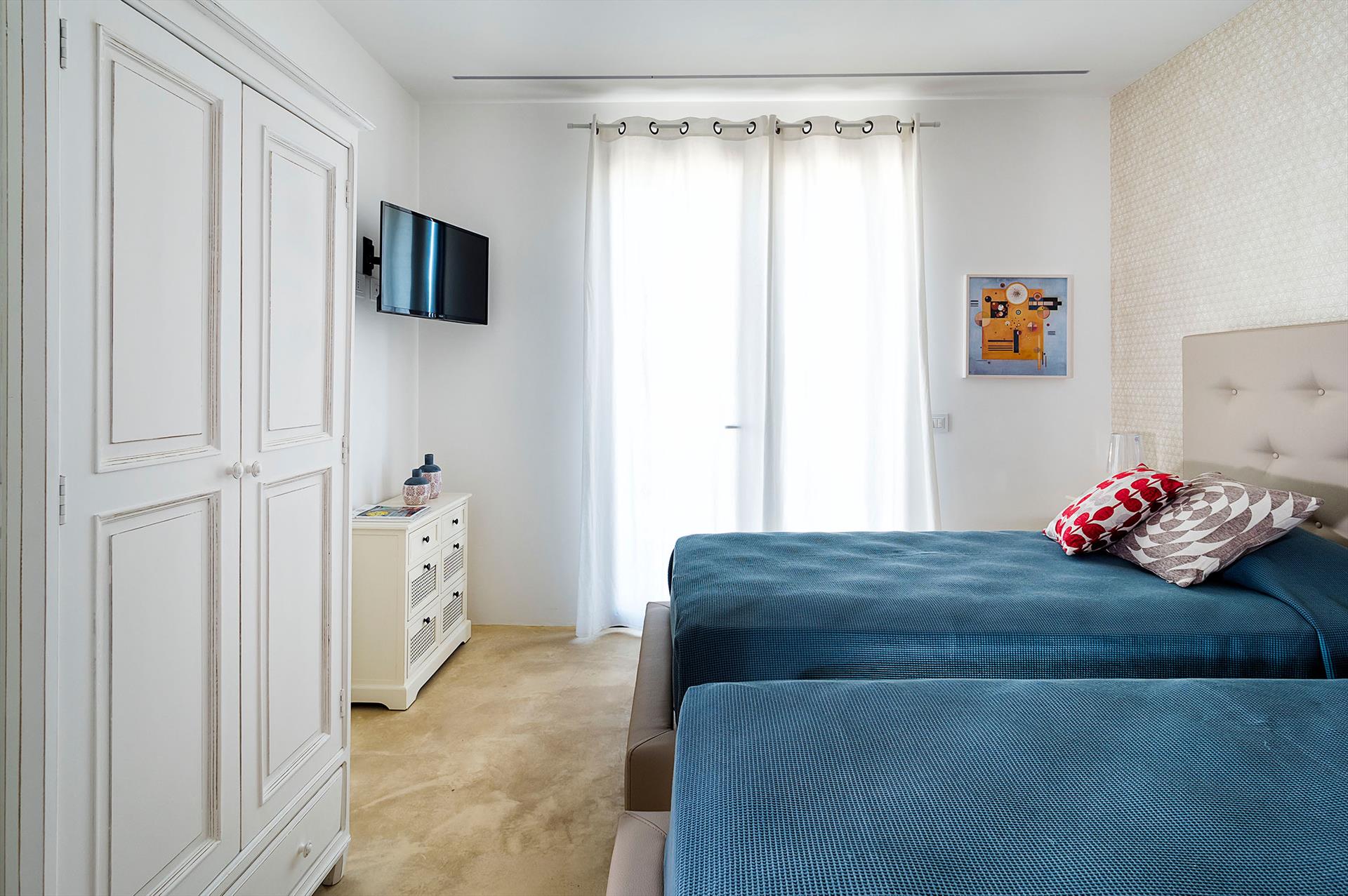 - chambre à coucher climatisée avec lit kingsize, télévision et salle de bain en suite