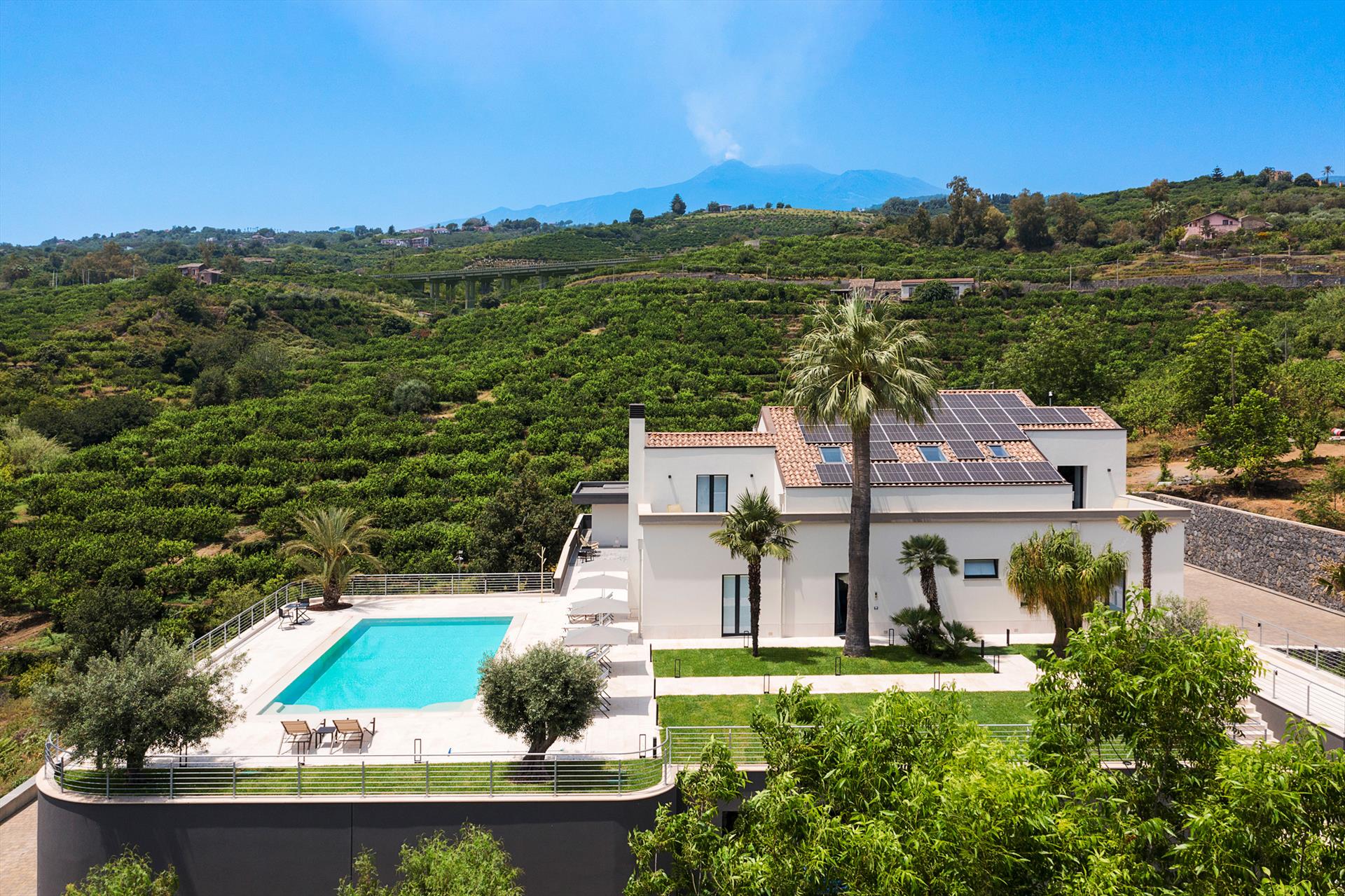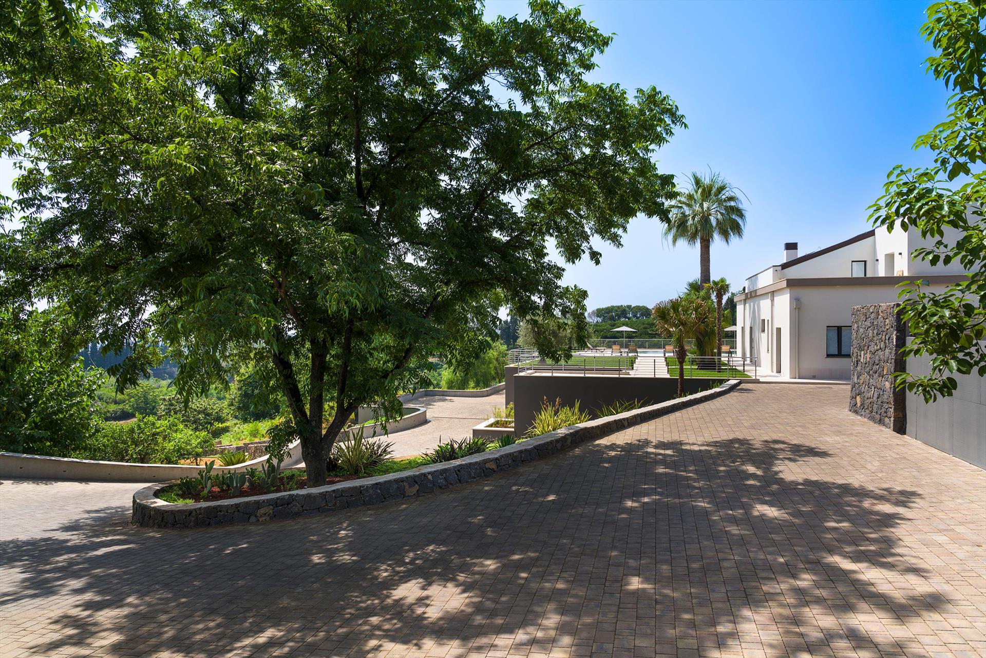 La Villa Cinguettio est située près de Mascali, connue pour le Nerello Mascalese (un cépage typique de l'Etna à partir duquel on produit des vins de qualité au goût intense et aromatique), sur la côte orientale de la Sicile, à 30 kilomètres au sud de Taormina. Située entre les pentes de l'Etna et la mer, la Villa Cinguettio se trouve à quelques minutes en voiture des plages renommées de Riposto et de Fondachello. Idéale pour des vacances confortables et relaxantes, elle est entourée de terrasses spacieuses et bien équipées qui accueillent la piscine d'eau salée, d'où l'on peut profiter d'une vue enchanteresse sur la campagne et la mer en arrière-plan.