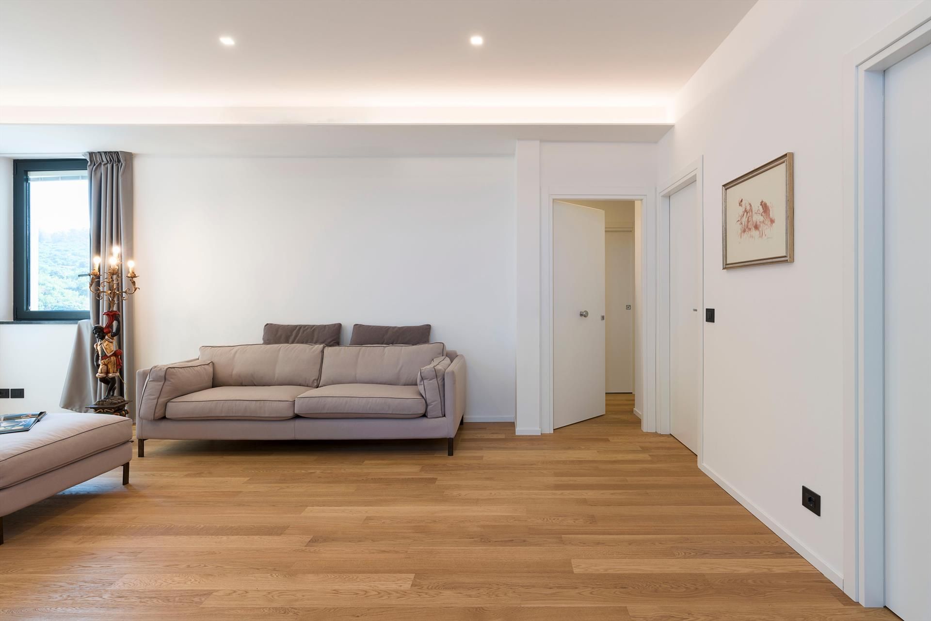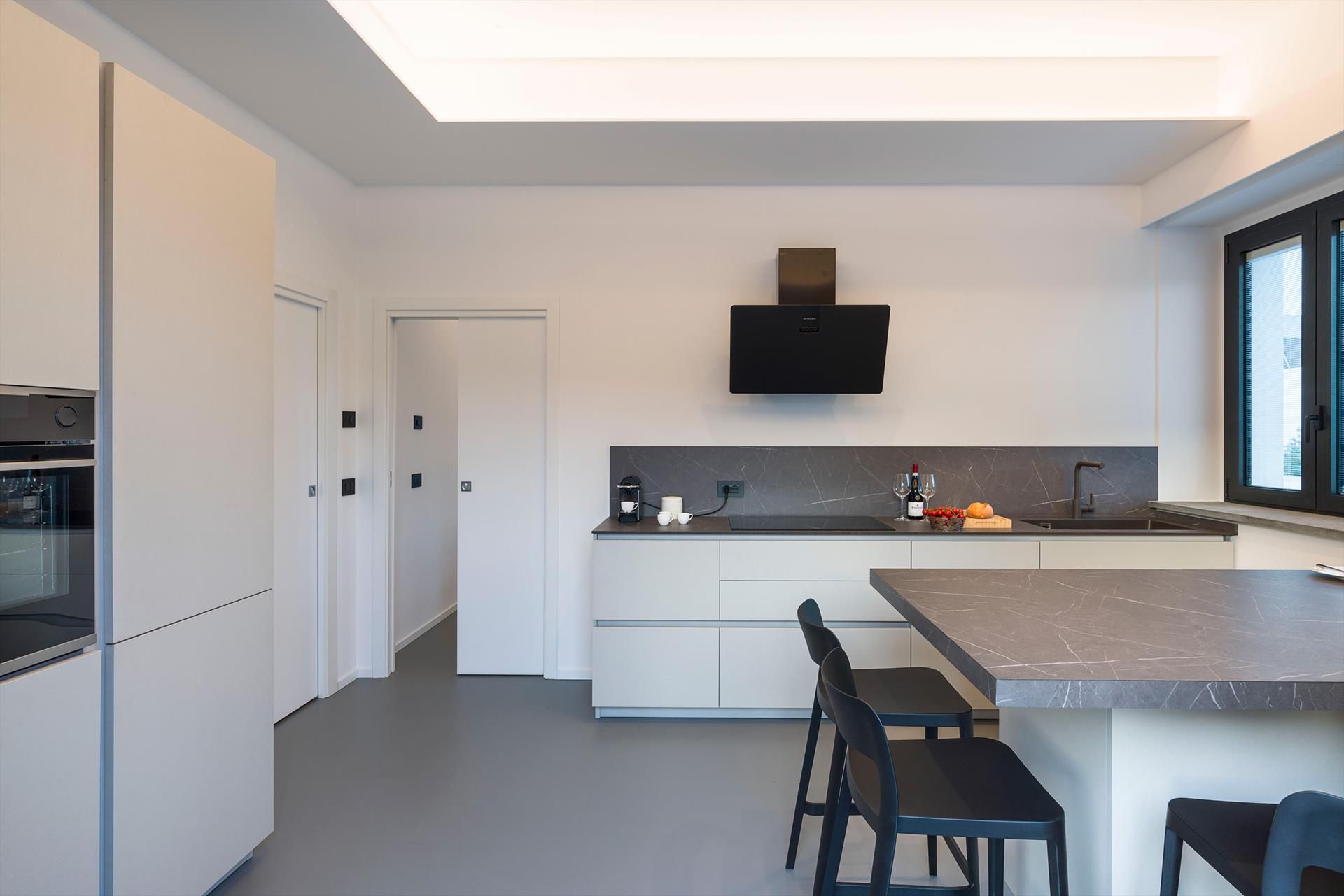 L'intérieur est caractérisé par une combinaison parfaite de matériaux nobles et d'un mobilier design qui confère à chaque pièce une touche de style et de sophistication. Le rez-de-chaussée comprend un grand espace de vie avec salon, salle à manger et cuisine, deux chambres doubles avec salle de bains privative, une salle de bains de service et la buanderie. Le premier étage comprend un deuxième salon, deux chambres doubles avec salle de bains privative, une cinquième chambre double, une chambre avec un lit français et une salle de bains avec douche. En plus d'être entièrement climatisée, la villa dispose d'un chauffage au sol, d'une cheminée, d'une connexion Wi-Fi, de 6 télévisions intelligentes, d'un lave-linge-sèche-linge, d'un lave-vaisselle, de 2 réfrigérateurs, d'une cafetière et d'un barbecue.