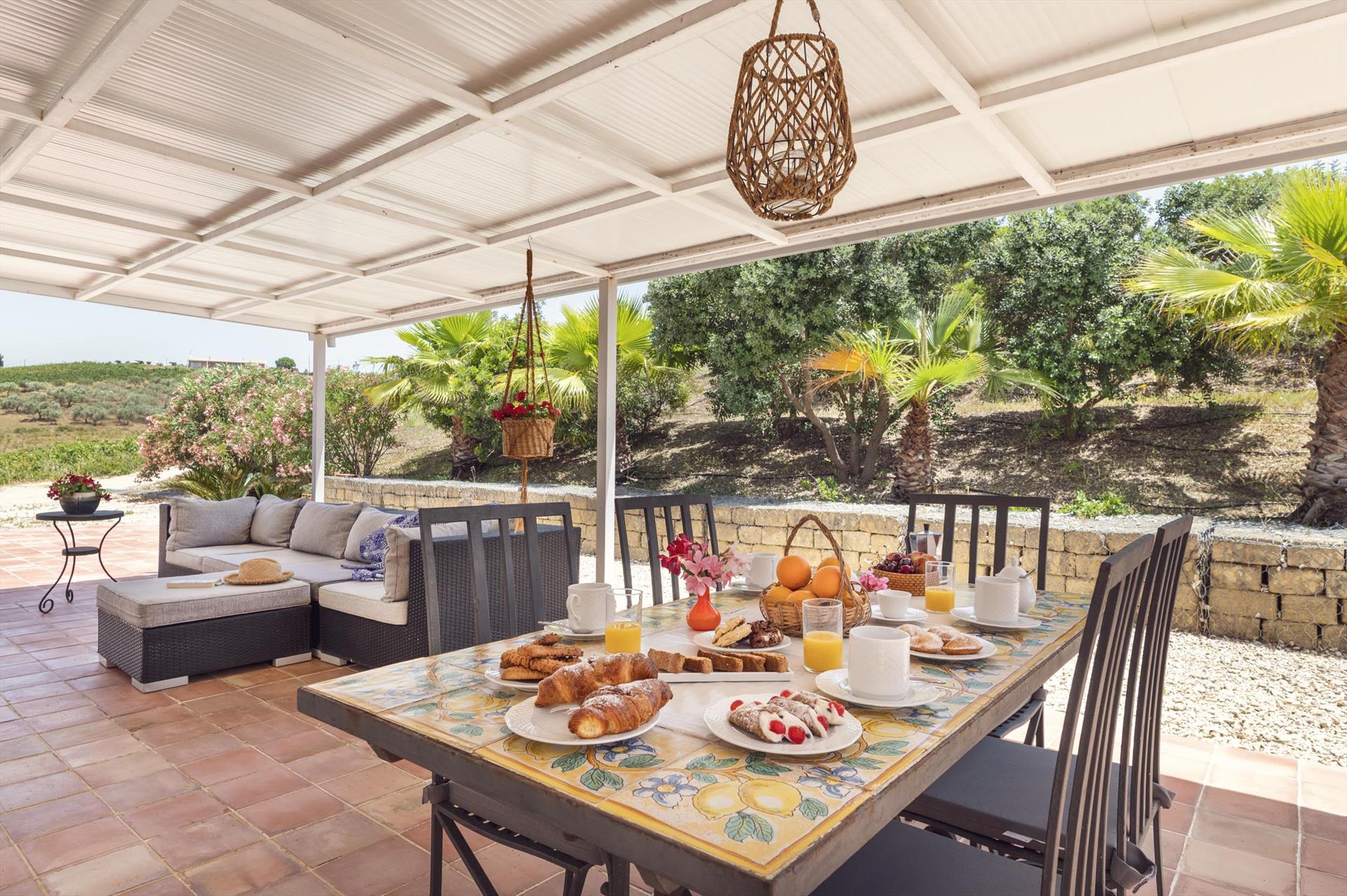 La Villa Lilly, avec sa propre piscine privée, est située sur la côte sud-ouest de la Sicile, dans la belle campagne sicilienne, à une courte distance du centre de Menfi et des belles plages de sable. La région est réputée pour la production de vins renommés et d'excellentes huiles d'olive extra vierge. Entouré d'un grand jardin avec des palmiers, des oliviers et du maquis méditerranéen, il bénéficie d'une vue splendide sur les collines environnantes avec des vignobles et le paysage typique avec des couchers de soleil colorés inoubliables. Un endroit paisible et agréable dans la nature pour des vacances relaxantes entre amis ou en famille. C'est l'endroit idéal pour ceux qui veulent combiner les visites de vignobles, de moulins à huile, de sites archéologiques et de merveilleuses journées à la plage. Il y a de nombreuses plages de sable tout le long de la côte, dans toutes les directions. Les plages de Porto Palo, Lido Fiori et Selinunte, qui sont à une courte distance en voiture, offrent de fantastiques lidos, bars et restaurants. Conseils : La longue plage de sable de la réserve naturelle de la rivière Belice est à seulement 1 km de la villa. La plage n'est jamais bondée et vous pouvez profiter de la nature intacte.
