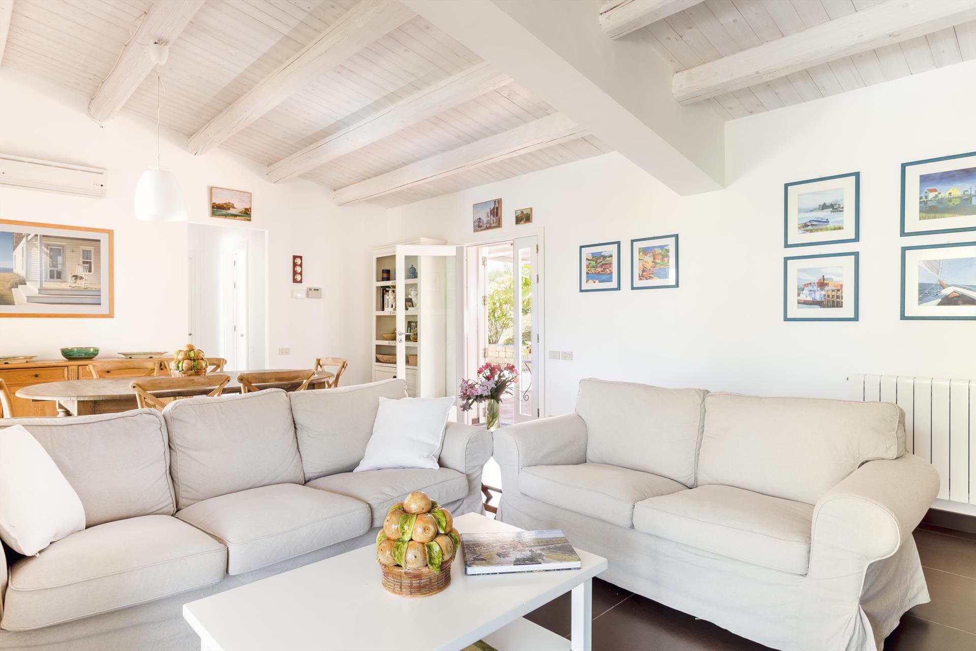 Intérieur : 1 salon/salle à manger (avec cheminée), 1 cuisine bien équipée, 3 chambres doubles (climatisées), 3 salles de bain (une en-suite)