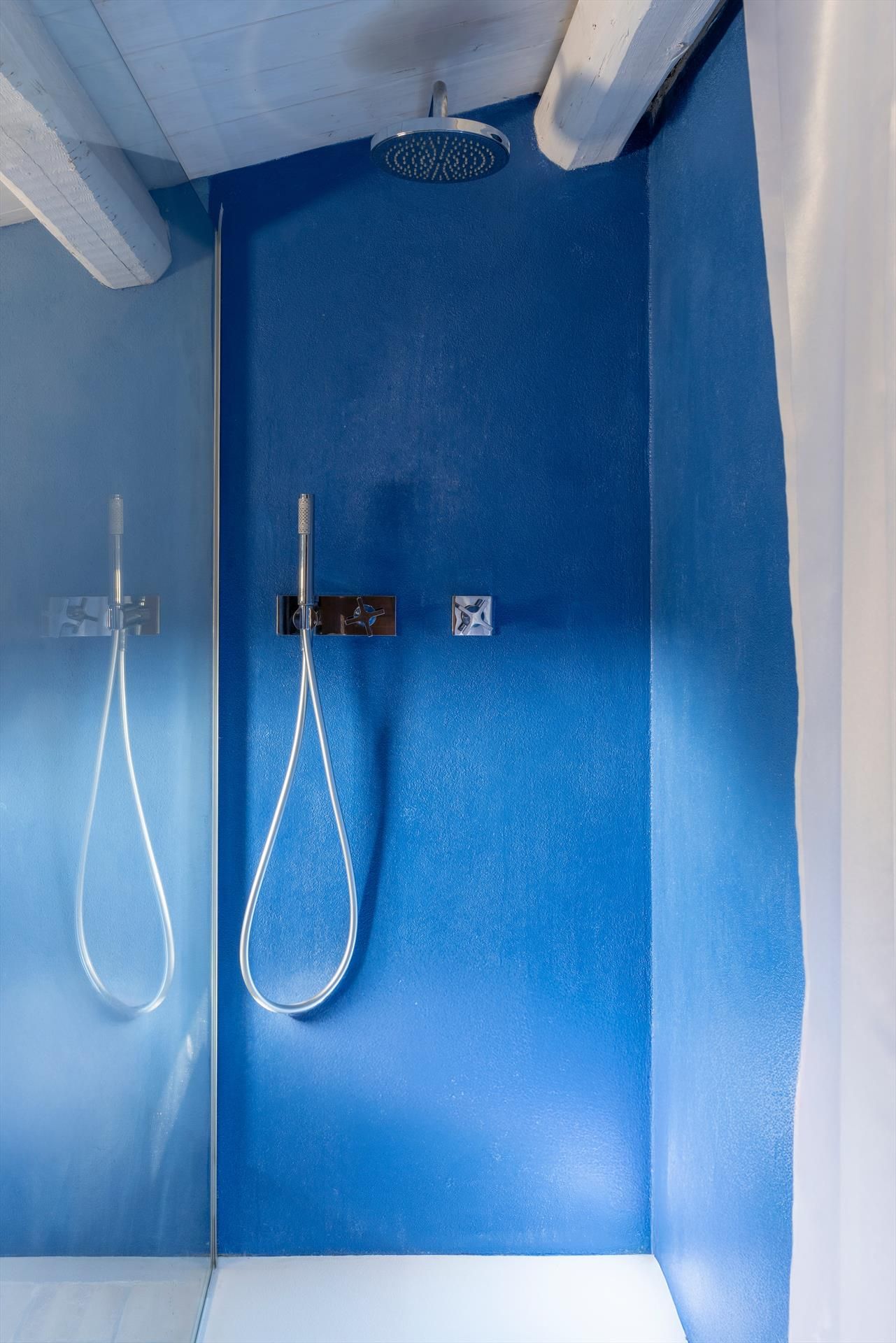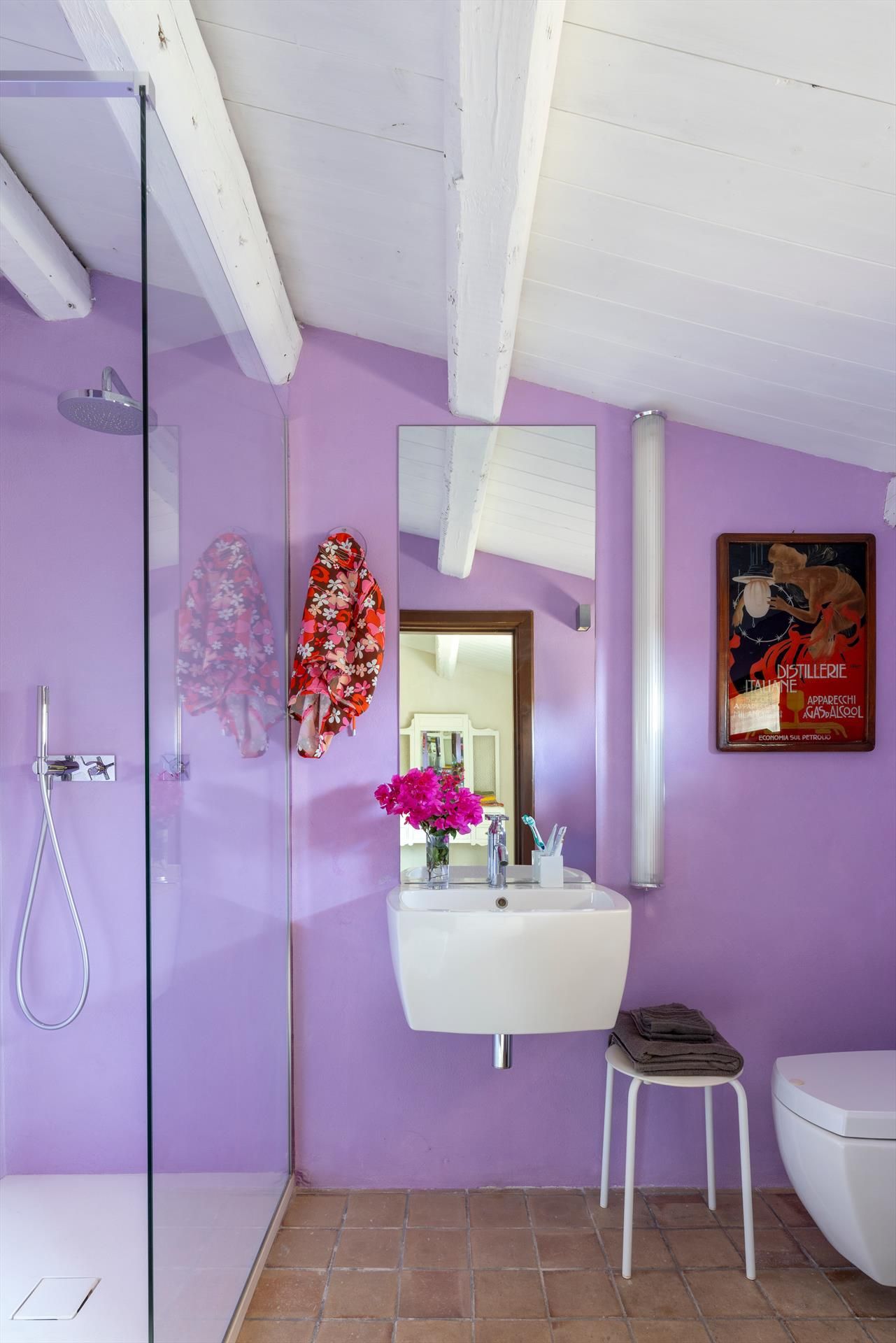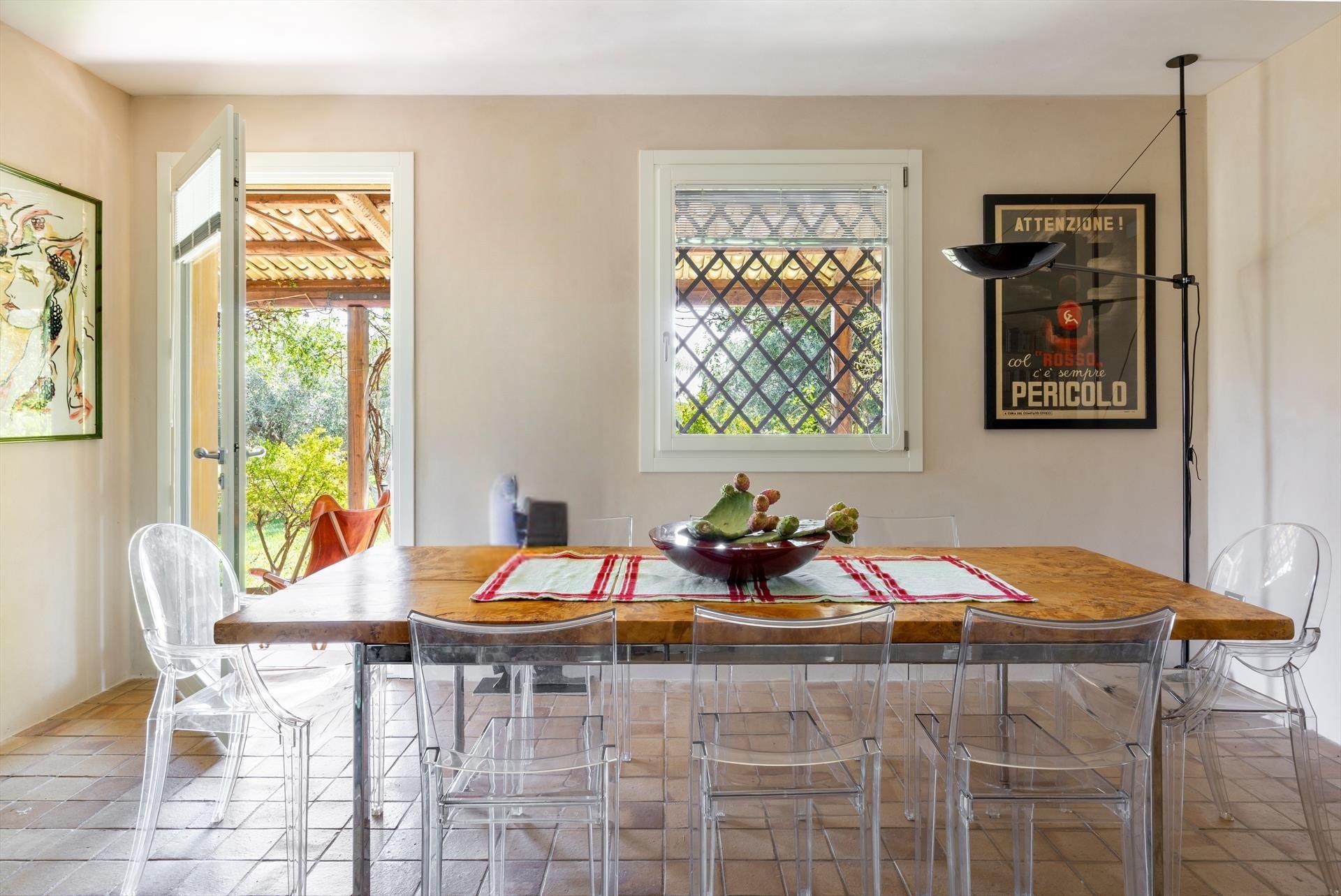Le vaste jardin méditerranéen, orné de pelouse, d’oliviers et d’arbres fruitiers, conduit à travers un amphithéâtre en pierre jusqu’à la piscine privée (11 x 2 mètres), entourée d’un espace de détente et de bronzage avec douche extérieure supplémentaire.