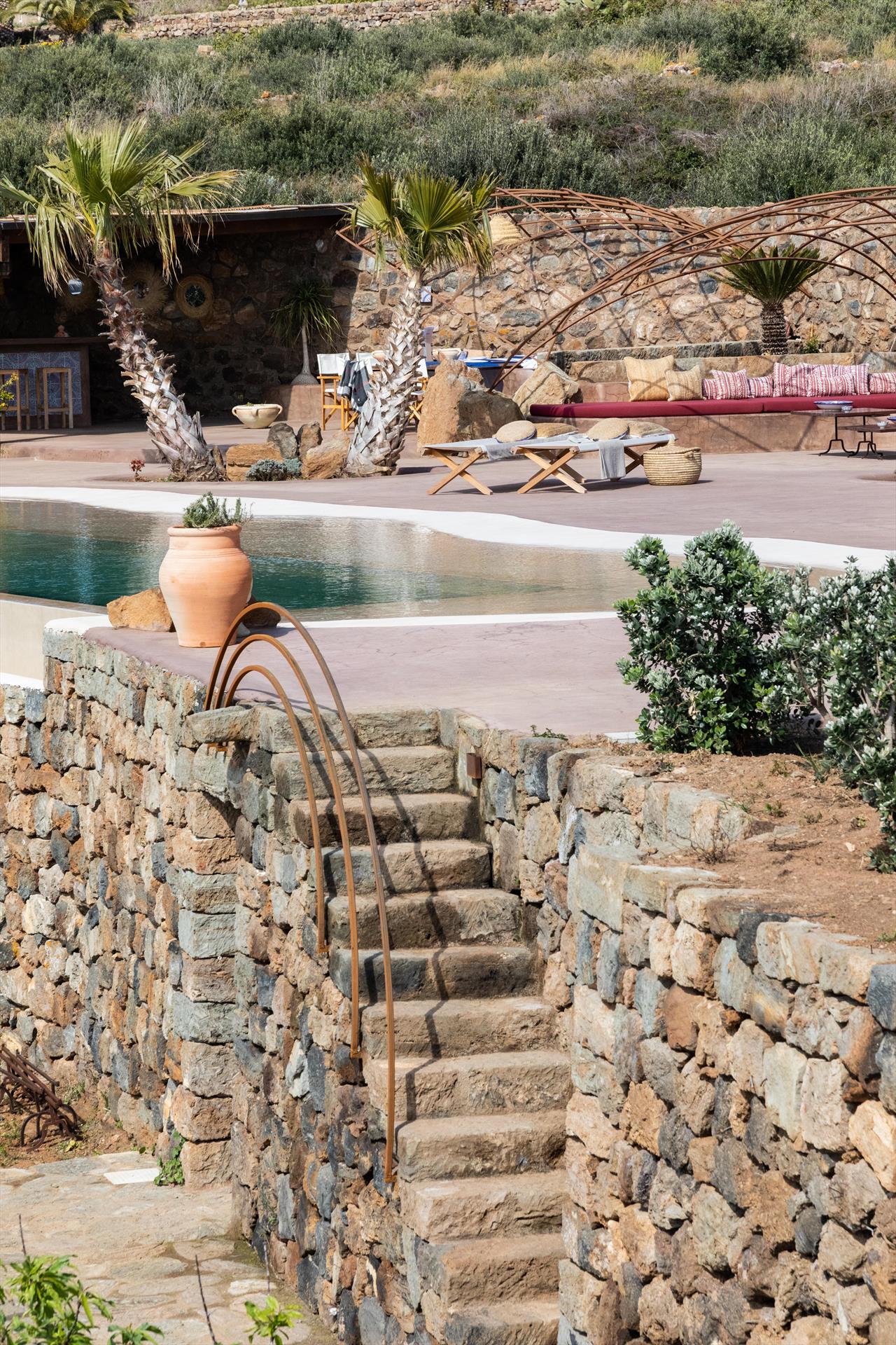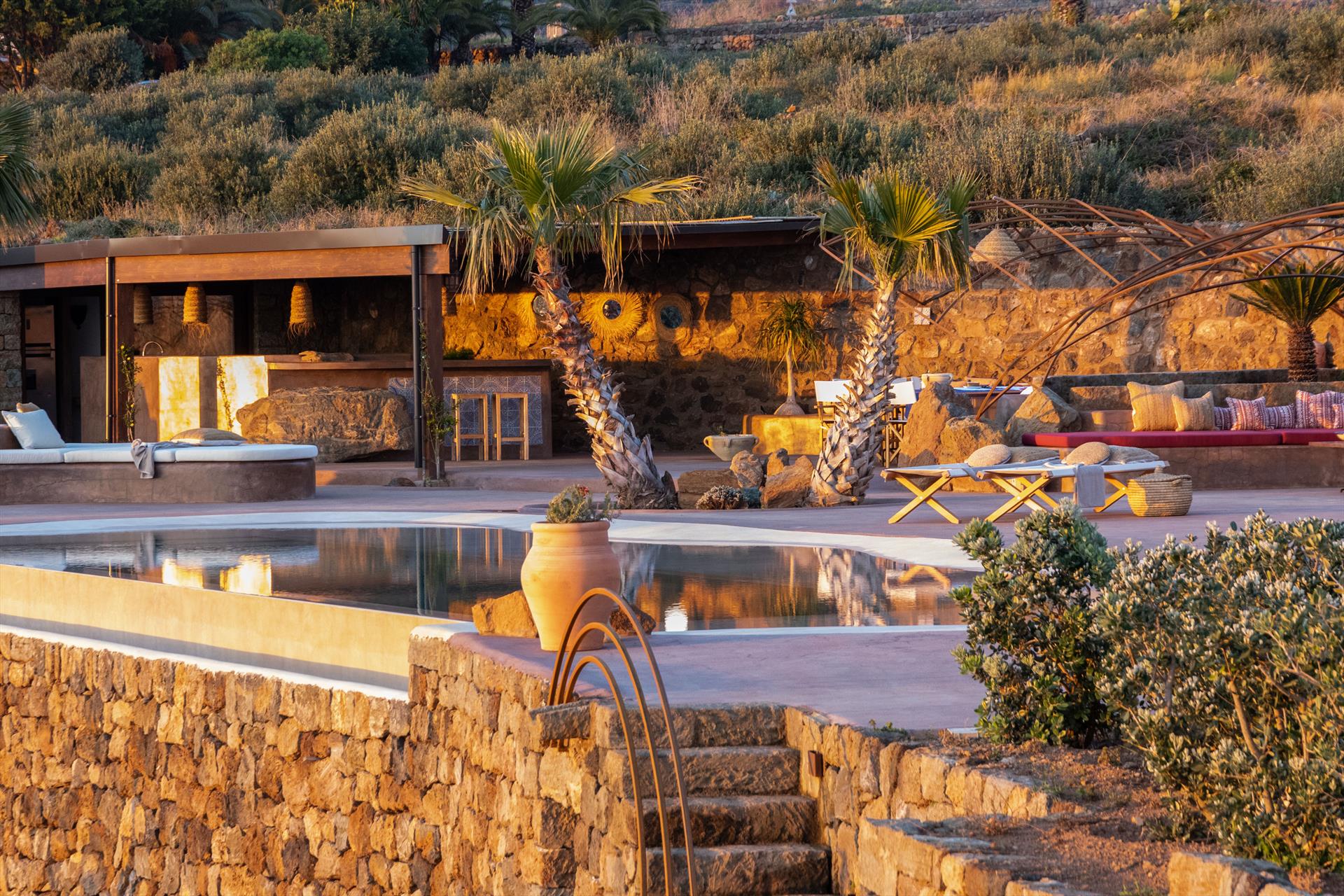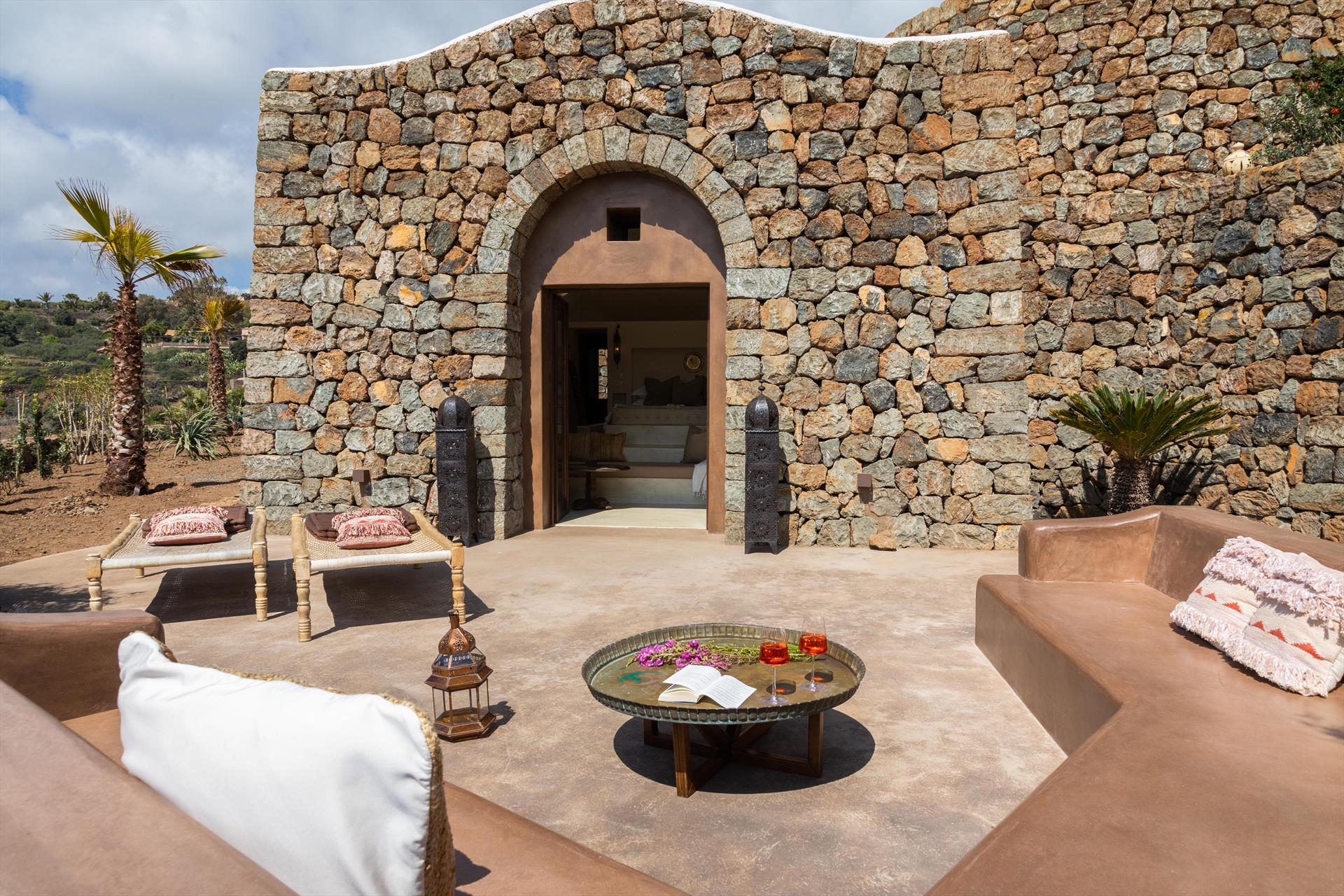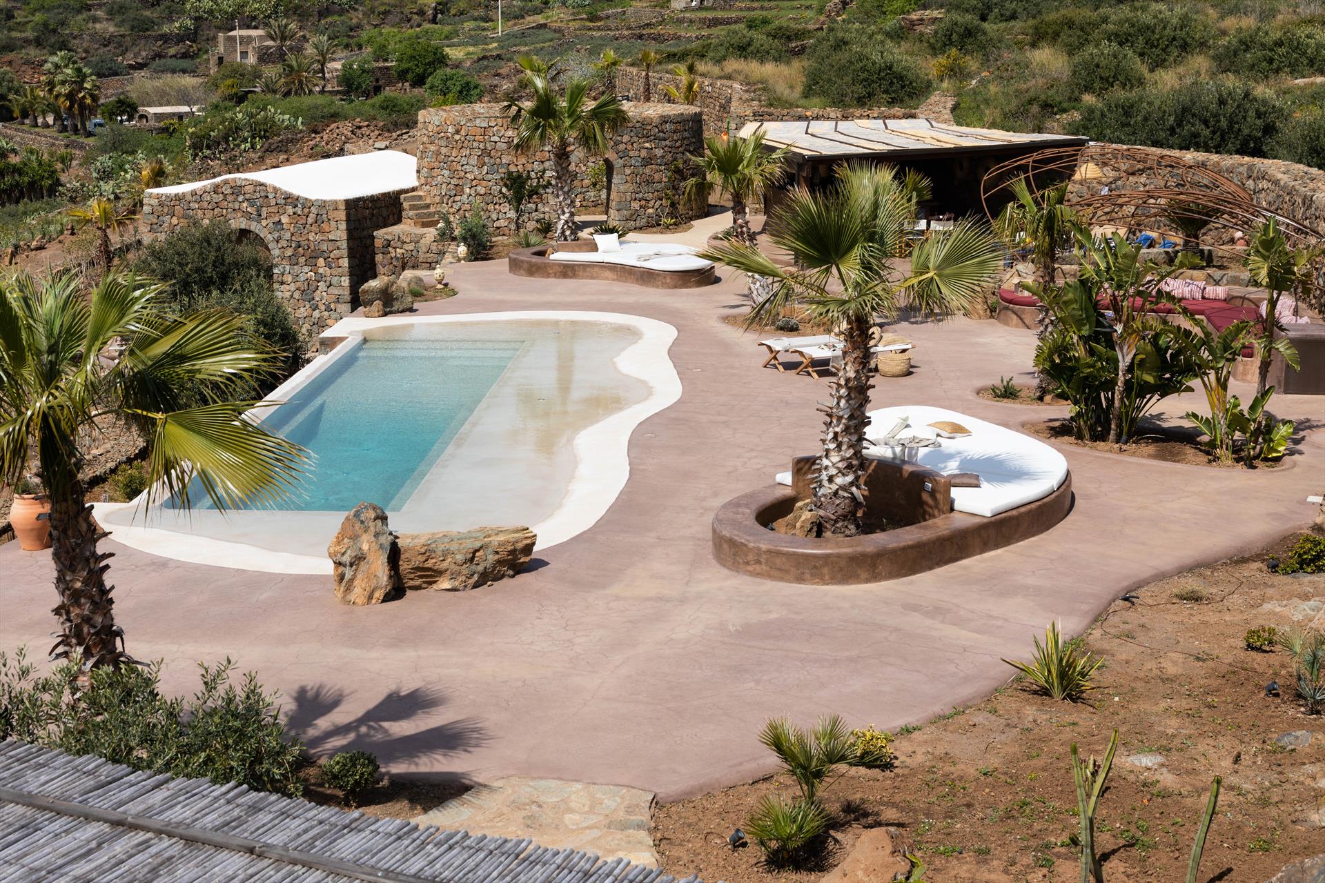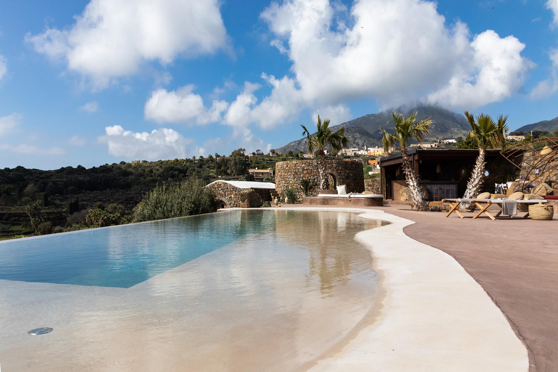 L'élégant domaine Dammusi Almofeem, situé dans le quartier caractéristique de Rekhale, au sud-ouest de l'île, est un coin de paradis où l'on prend soin des moindres détails. Avec sa vue inoubliable qui s'étend de la mer à la Montagna Grande, il vous enchantera avec ses couchers de soleil magiques, ses couleurs uniques et le calme d'une nature intacte, vous permettant de vivre pleinement le charme particulier de l'atmosphère de l'île. Entourée d'un jardin méditerranéen, cette maison de campagne typique de Pantelleria peut accueillir jusqu'à 8 personnes. Elle se compose de trois "dammusi" indépendants qui partagent les mêmes installations et les mêmes grands espaces extérieurs : une piscine à débordement entourée d'une terrasse ensoleillée, une grande cuisine extérieure bien équipée (avec terrasse), des espaces confortables pour se détendre avec des coussins et des canapés en maçonnerie, ainsi qu'une table à manger spacieuse : l'endroit idéal pour les petits groupes. Le style de l'intérieur est raffiné et accueillant, mêlant des lignes modernes à des accessoires artisanaux typiquement siciliens. La Balata dei Turchi, Martingana, Nikà, Scauri et la grotte de Sataria sont facilement accessibles depuis le gîte rural et, à proximité immédiate, se trouvent les villages de Rekhale et Scauri, où vous trouverez toutes les commodités, les services, les magasins, les restaurants et bien plus encore.