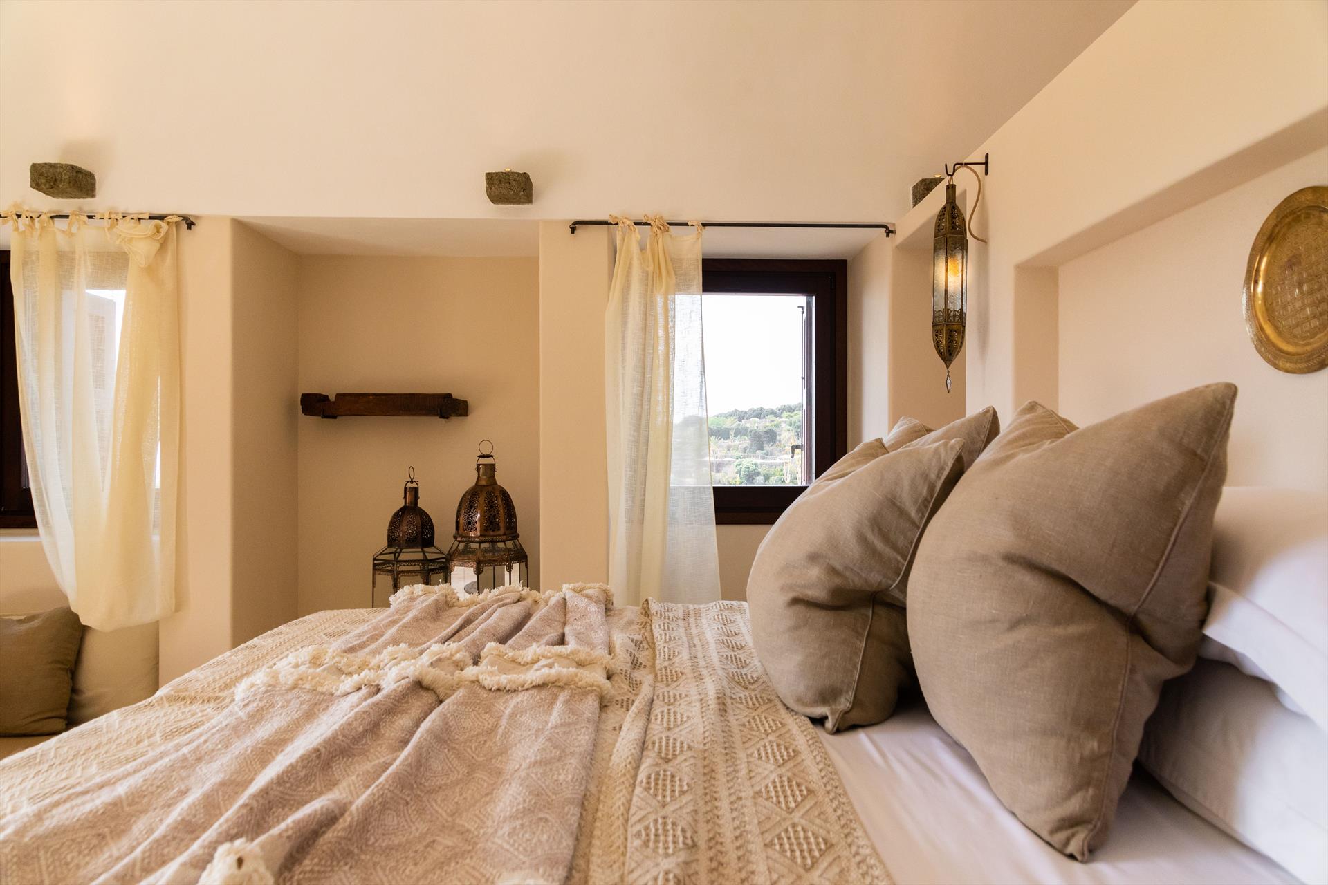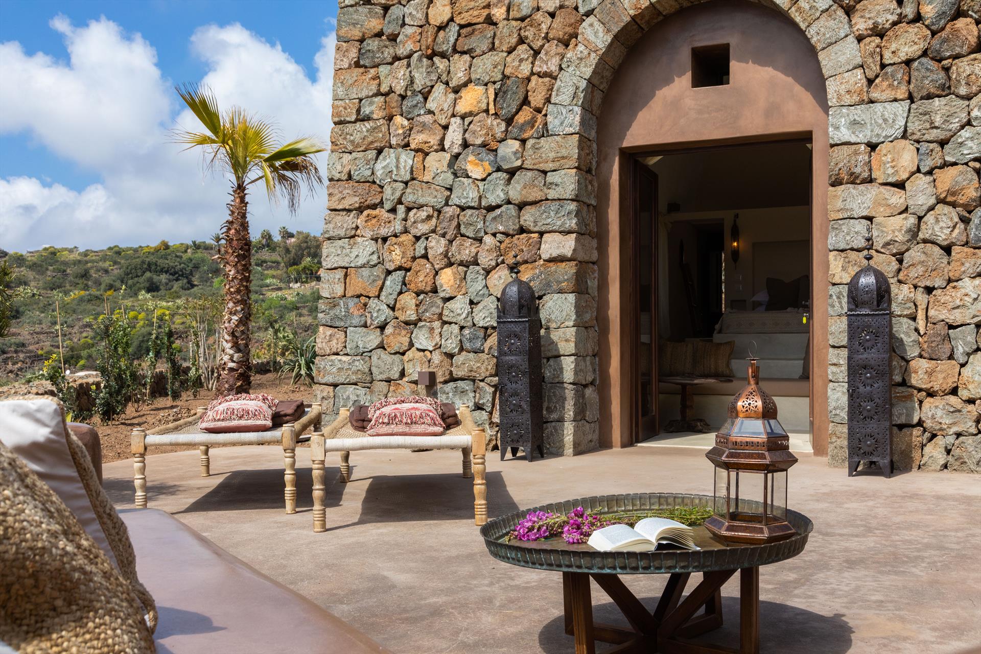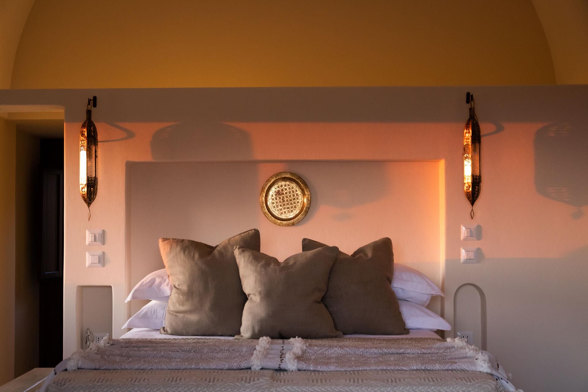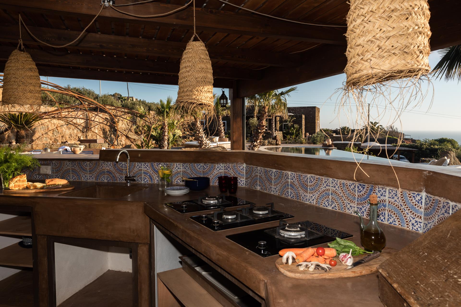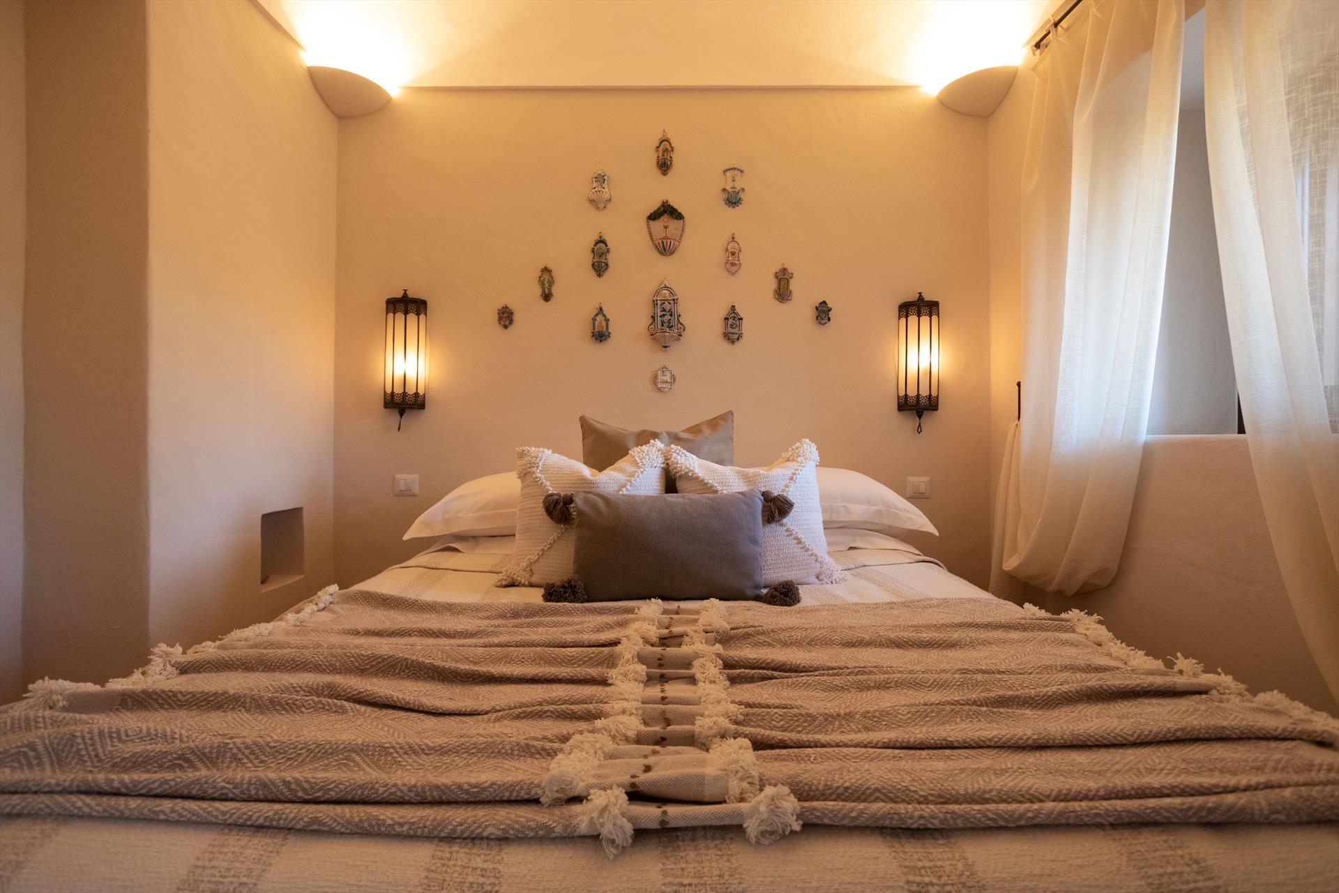 L'élégant domaine Dammusi Almofeem, situé dans le quartier caractéristique de Rekhale, au sud-ouest de l'île, est un coin de paradis où l'on prend soin des moindres détails. Avec sa vue inoubliable qui s'étend de la mer à la Montagna Grande, il vous enchantera avec ses couchers de soleil magiques, ses couleurs uniques et le calme d'une nature intacte, vous permettant de vivre pleinement le charme particulier de l'atmosphère de l'île. Entourée d'un jardin méditerranéen, cette maison de campagne typique de Pantelleria peut accueillir jusqu'à 8 personnes. Elle se compose de trois "dammusi" indépendants qui partagent les mêmes installations et les mêmes grands espaces extérieurs : une piscine à débordement entourée d'une terrasse ensoleillée, une grande cuisine extérieure bien équipée (avec terrasse), des espaces confortables pour se détendre avec des coussins et des canapés en maçonnerie, ainsi qu'une table à manger spacieuse : l'endroit idéal pour les petits groupes. Le style de l'intérieur est raffiné et accueillant, mêlant des lignes modernes à des accessoires artisanaux typiquement siciliens. La Balata dei Turchi, Martingana, Nikà, Scauri et la grotte de Sataria sont facilement accessibles depuis le gîte rural et, à proximité immédiate, se trouvent les villages de Rekhale et Scauri, où vous trouverez toutes les commodités, les services, les magasins, les restaurants et bien plus encore.