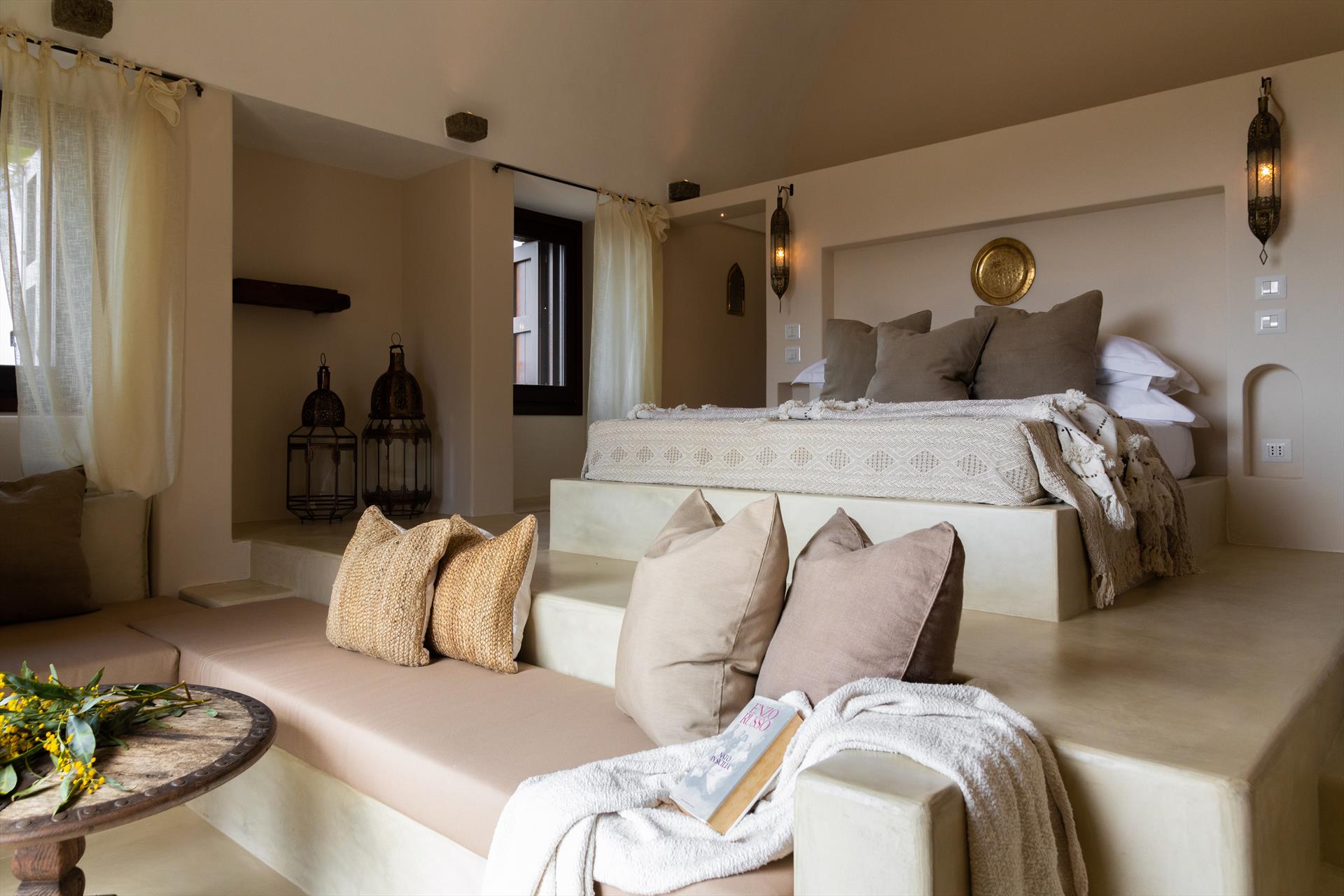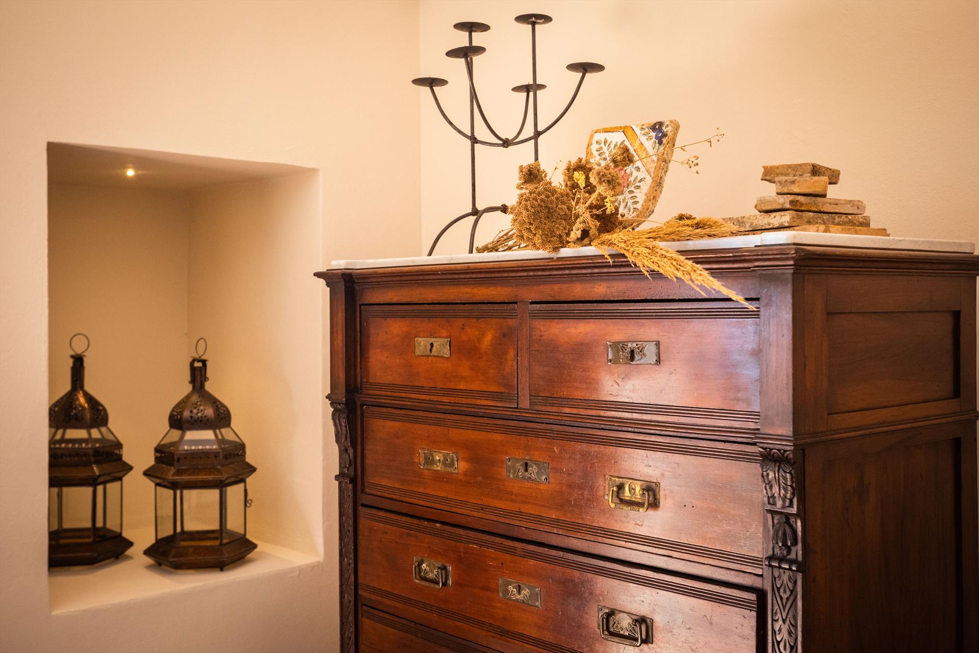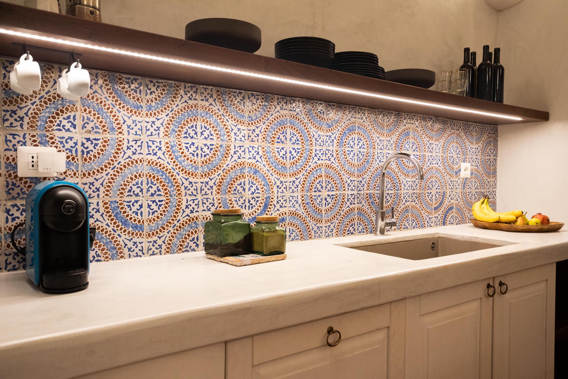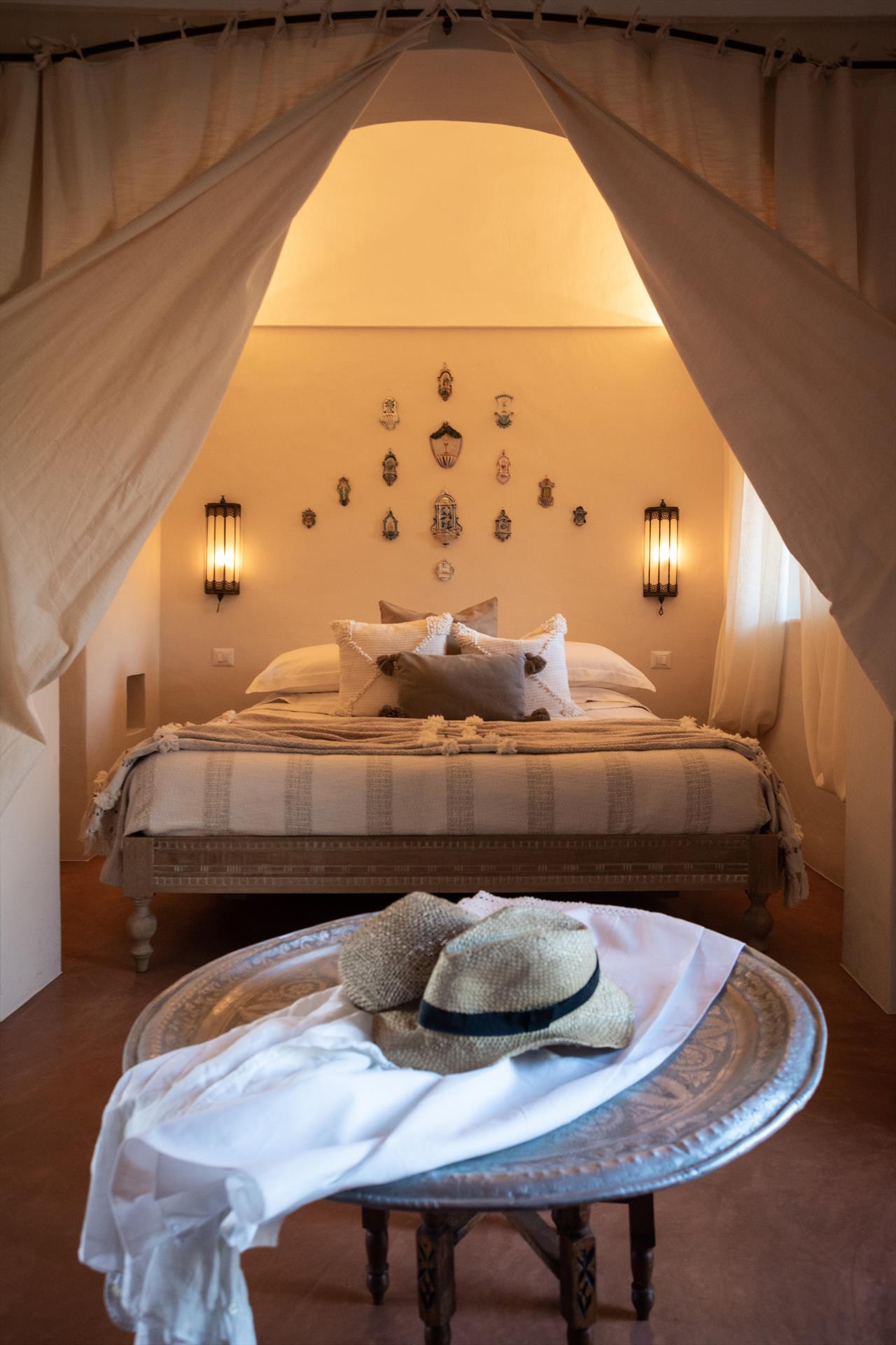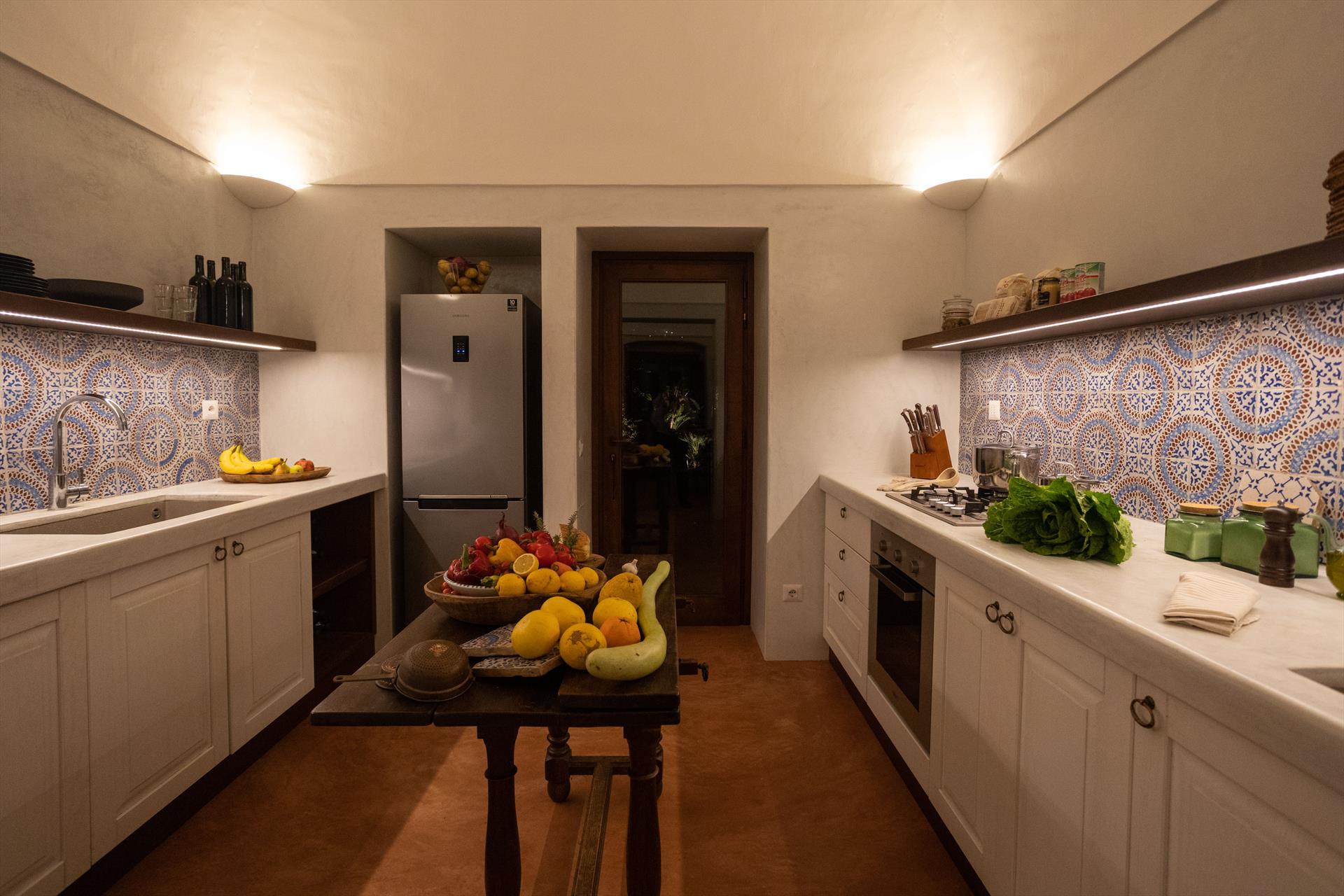 L'élégant domaine Dammusi Almofeem, situé dans le quartier caractéristique de Rekhale, au sud-ouest de l'île, est un coin de paradis où l'on prend soin des moindres détails. Avec sa vue inoubliable qui s'étend de la mer à la Montagna Grande, il vous enchantera avec ses couchers de soleil magiques, ses couleurs uniques et le calme d'une nature intacte, vous permettant de vivre pleinement le charme particulier de l'atmosphère de l'île. Entourée d'un jardin méditerranéen, cette maison de campagne typique de Pantelleria peut accueillir jusqu'à 8 personnes. Elle se compose de trois "dammusi" indépendants qui partagent les mêmes installations et les mêmes grands espaces extérieurs : une piscine à débordement entourée d'une terrasse ensoleillée, une grande cuisine extérieure bien équipée (avec terrasse), des espaces confortables pour se détendre avec des coussins et des canapés en maçonnerie, ainsi qu'une table à manger spacieuse : l'endroit idéal pour les petits groupes. Le style de l'intérieur est raffiné et accueillant, mêlant des lignes modernes à des accessoires artisanaux typiquement siciliens. La Balata dei Turchi, Martingana, Nikà, Scauri et la grotte de Sataria sont facilement accessibles depuis le gîte rural et, à proximité immédiate, se trouvent les villages de Rekhale et Scauri, où vous trouverez toutes les commodités, les services, les magasins, les restaurants et bien plus encore.