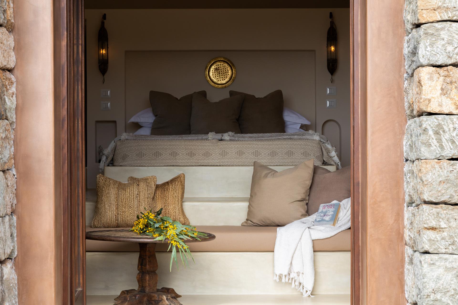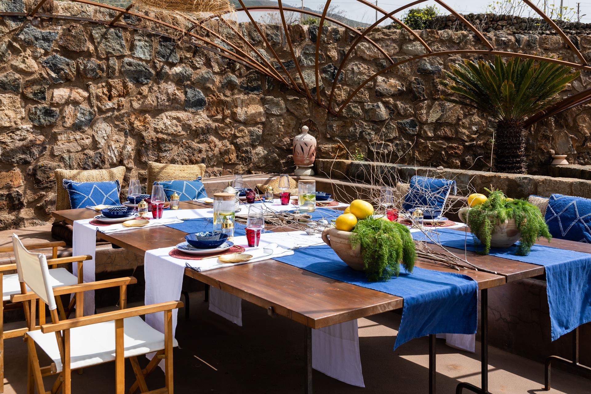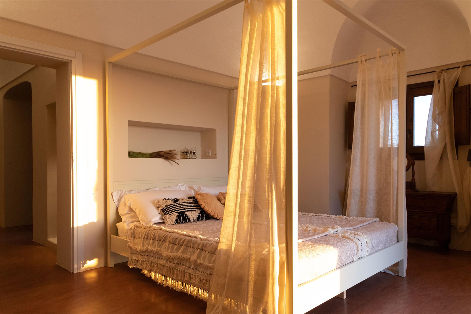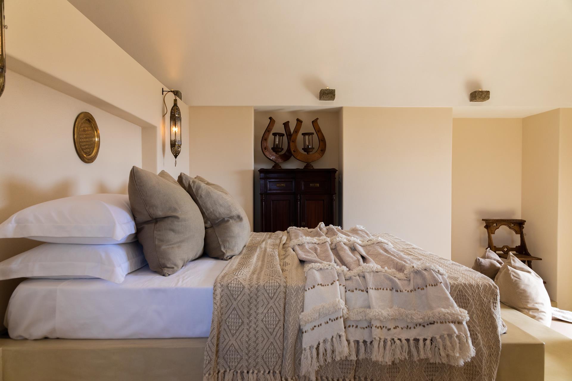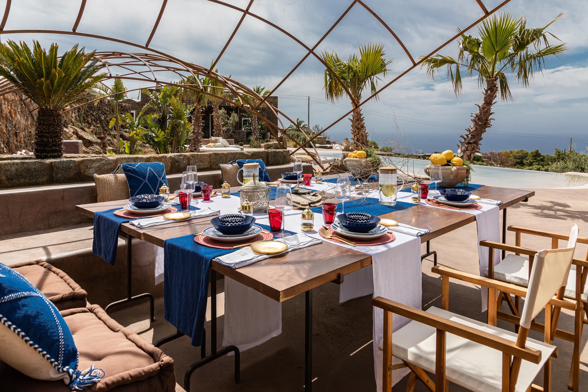 L'élégant domaine Dammusi Almofeem, situé dans le quartier caractéristique de Rekhale, au sud-ouest de l'île, est un coin de paradis où l'on prend soin des moindres détails. Avec sa vue inoubliable qui s'étend de la mer à la Montagna Grande, il vous enchantera avec ses couchers de soleil magiques, ses couleurs uniques et le calme d'une nature intacte, vous permettant de vivre pleinement le charme particulier de l'atmosphère de l'île. Entourée d'un jardin méditerranéen, cette maison de campagne typique de Pantelleria peut accueillir jusqu'à 8 personnes. Elle se compose de trois "dammusi" indépendants qui partagent les mêmes installations et les mêmes grands espaces extérieurs : une piscine à débordement entourée d'une terrasse ensoleillée, une grande cuisine extérieure bien équipée (avec terrasse), des espaces confortables pour se détendre avec des coussins et des canapés en maçonnerie, ainsi qu'une table à manger spacieuse : l'endroit idéal pour les petits groupes. Le style de l'intérieur est raffiné et accueillant, mêlant des lignes modernes à des accessoires artisanaux typiquement siciliens. La Balata dei Turchi, Martingana, Nikà, Scauri et la grotte de Sataria sont facilement accessibles depuis le gîte rural et, à proximité immédiate, se trouvent les villages de Rekhale et Scauri, où vous trouverez toutes les commodités, les services, les magasins, les restaurants et bien plus encore.