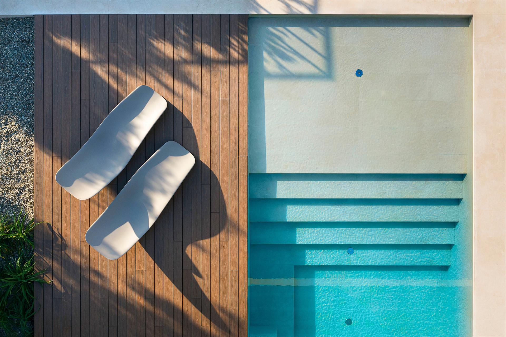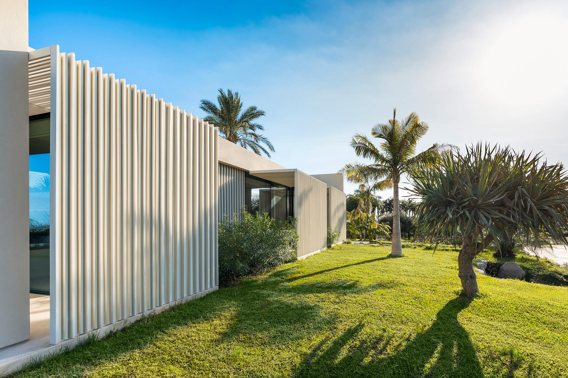 Dans une zone réservée de la propriété vit un jeune couple qui s'occupe discrètement et professionnellement de l'entretien de la maison, du jardin et de la piscine.
