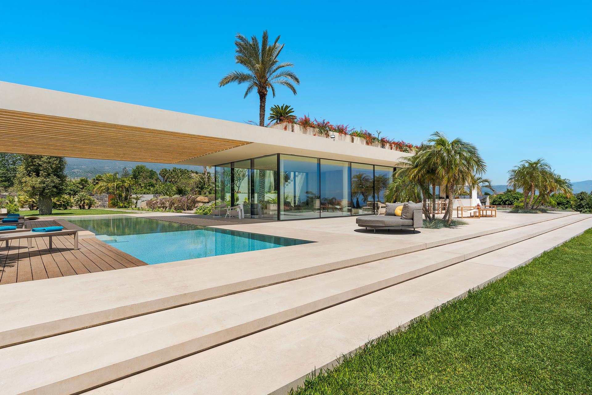 Une villa de luxe avec piscine et espace bien-être, située dans un endroit calme et ensoleillé près de Taormina. Entourée d'un jardin méditerranéen enchanteur, cette résidence exclusive dispose d'une superbe piscine à débordement et de grandes terrasses bien équipées donnant sur la campagne et la mer, où la vue s'étend jusqu'à Taormina et l'Etna. Sharbat est une résidence moderne conçue et construite dans le plein respect de l'environnement, utilisant des solutions technologiques et de construction écologiques, y compris des systèmes solaires thermiques et photovoltaïques, un système de chauffage-refroidissement par le sol et des cadres en aluminium à rupture de pont thermique. Parfaite pour des vacances de détente avec de grands espaces, du luxe et du confort, la villa Sharbat se distingue par son design contemporain raffiné. Les intérieurs sont répartis sur trois niveaux reliés par un confortable escalier intérieur. Au rez-de-chaussée se trouvent une cuisine super-équipée et le grand espace de vie qui s'ouvre sur les terrasses, le jardin et la piscine avec de grandes baies vitrées. Au premier étage se trouve la zone nuit avec trois chambres, toutes avec patio et salle de bain avec douche. Tandis qu'au niveau inférieur se trouve la quatrième chambre, également avec salle de bain-douche attenante et l'espace bien-être exclusif qui comprend un grand bain à remous, un sauna, un hammam, une douche émotionnelle et un espace fitness. La Villa entièrement climatisée est équipée des meilleurs conforts : Wi-Fi, smart TV, lave-linge, sèche-linge, lave-vaisselle, four électrique et micro-ondes, machine à café expresso et américain, cave à vin, machine à glaçons, espace barbecue et parking privé. Mais Sharbat est également un point de départ idéal pour rejoindre la belle plage de Fondachello, Taormina, l'Etna et Catane en quelques minutes en voiture. Tandis que plus au sud se trouvent Syracuse, Vendicari et les villes baroques évocatrices du Val di Noto.
