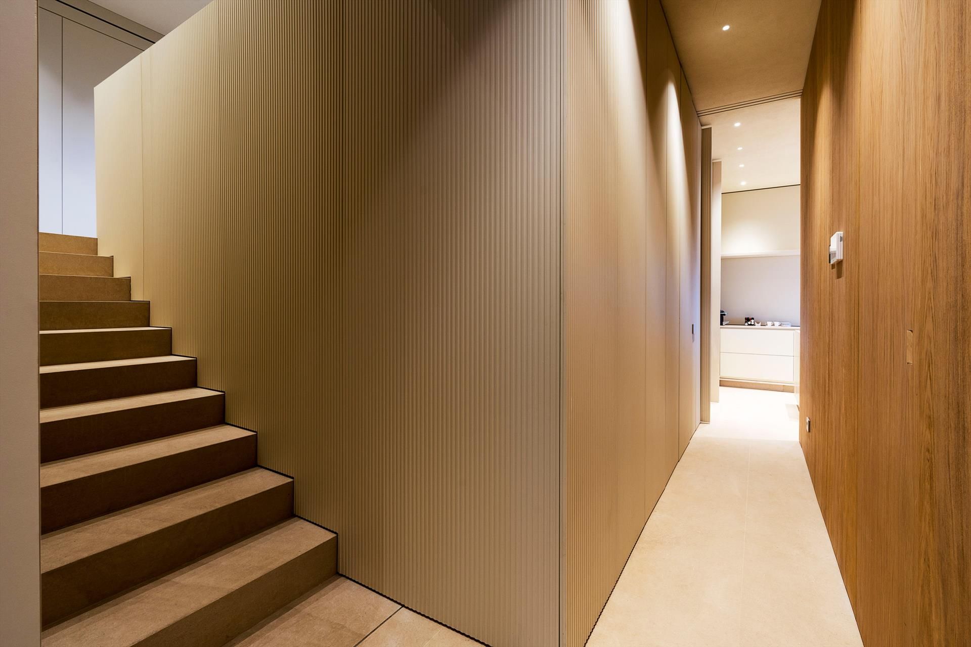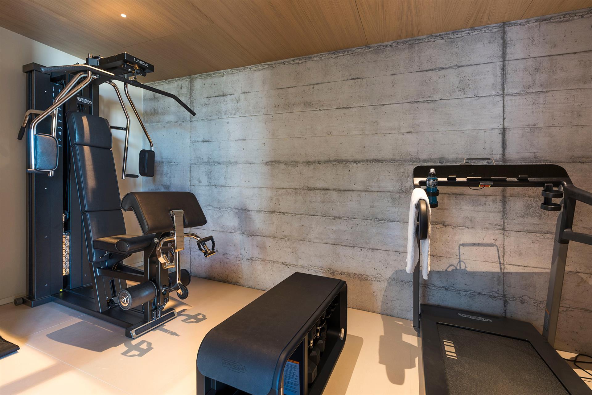 - Niveau inférieur : 1 chambre double (180x200 cm) avec salle de bain-douche et mini-bar, espace fitness et espace bien-être (bain à remous, sauna, hammam, douche émotionnelle et salle de bain), cave.