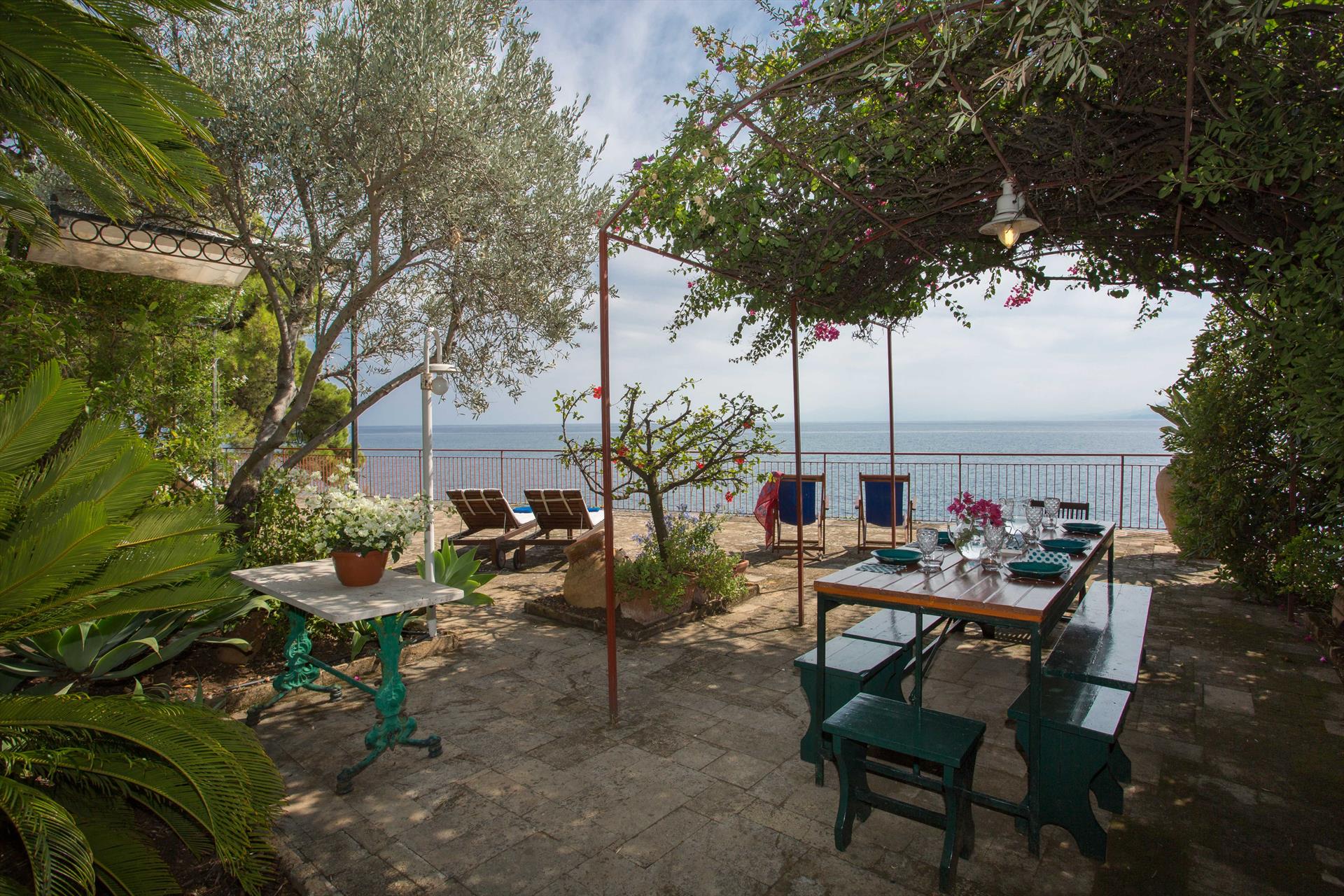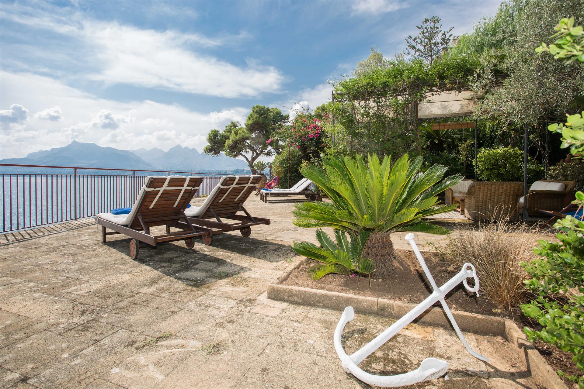 La Villa Calipso est une charmante villa de bord de mer, avec une fantastique terrasse juste au-dessus de la mer, située à Solanto - Santa Flavia, à seulement 20 km à l'est de Palerme. Cette villa spacieuse et confortable a été décorée avec beaucoup de soin et offre un vaste espace extérieur, allant d'une terrasse ensoleillée avec des chaises longues, à un splendide espace extérieur en maçonnerie avec barbecue (couvert) et table à manger pour faire des grillades et manger "Al Fresco", ainsi qu'un coin salon couvert. Les clients ont un accès direct à la mer par un petit escalier depuis la terrasse, idéal pour ceux qui aiment se baigner à tout moment de la journée.