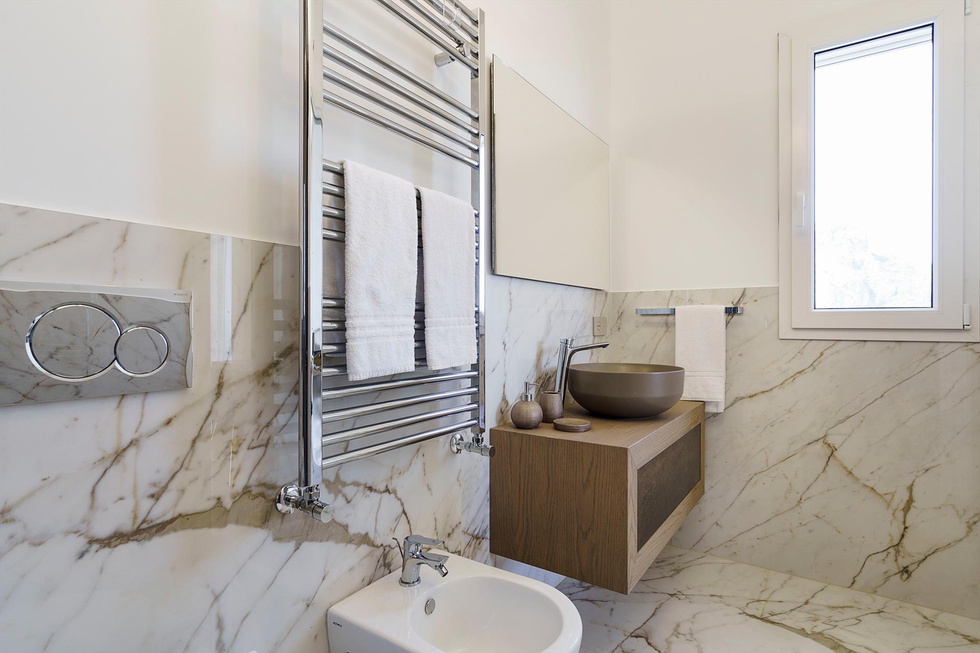 Premier étage : Salon/salle à manger, cuisine, buanderie, 1 salle de bain (toilettes et lavabo), 1 chambre double (lit king size) avec douche en-suite, 1 chambre double/lits jumeaux avec douche en-suite. Deuxième étage : salon, 2 chambres doubles (lit king size) avec douche en-suite, 1 chambre double avec douche en-suite, 1 chambre double/lits jumeaux avec douche en-suite.
